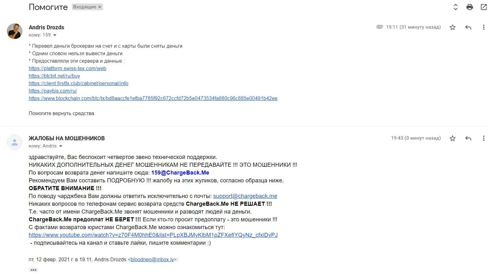 В данном разделе предлагаем увидеть информационный материал в виде жалобы на скам-конторы Paybis и Револют, которые действуя сообща обманули клиента.