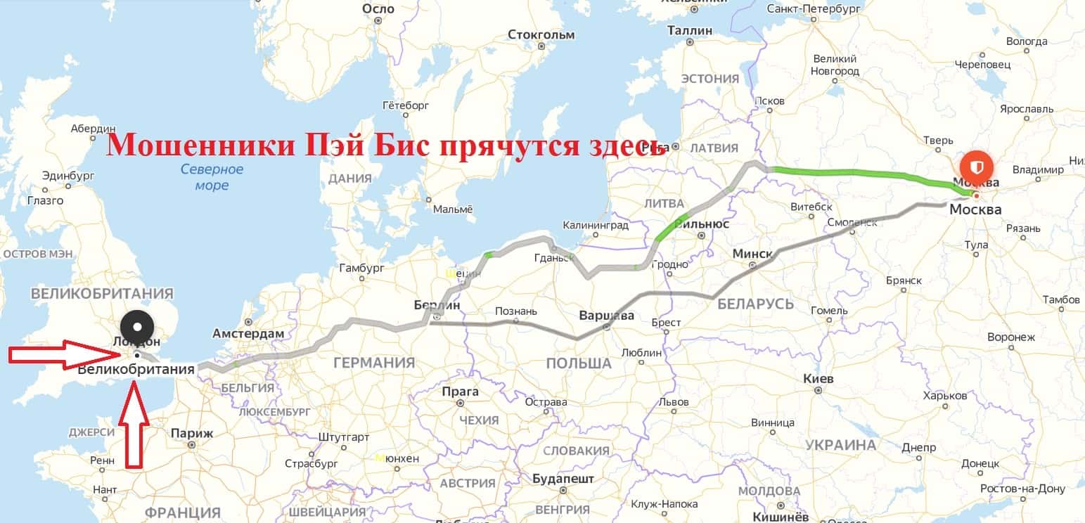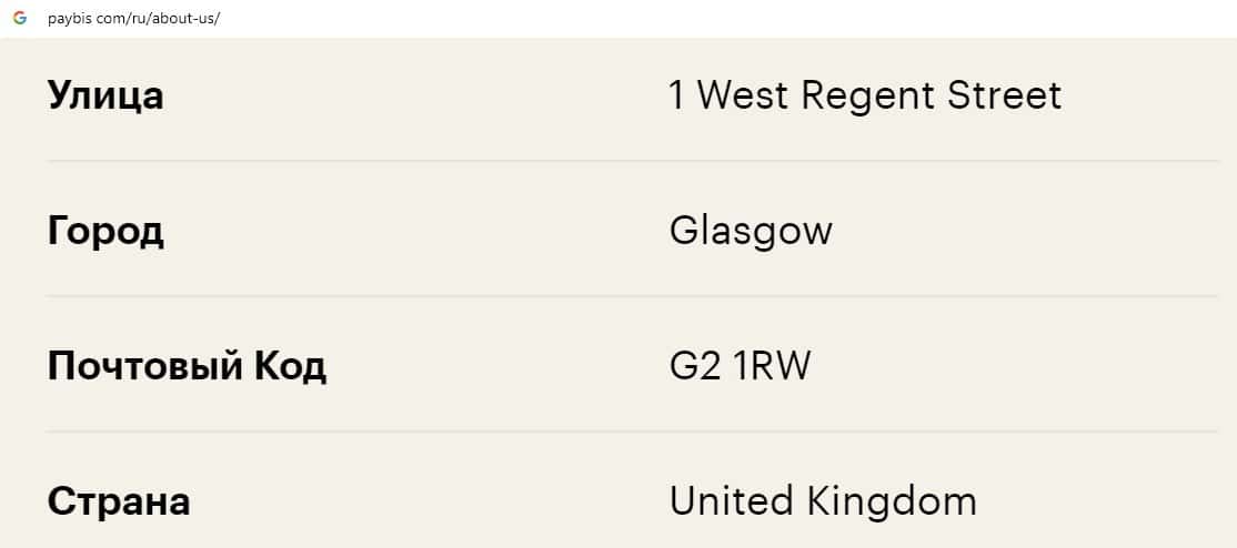 Сведения о месте регистрации Пэй Бис - фейк, так как большинство проектов у себя на сайте указывают адрес местонахождения на территории Великобритании в качестве приманки.