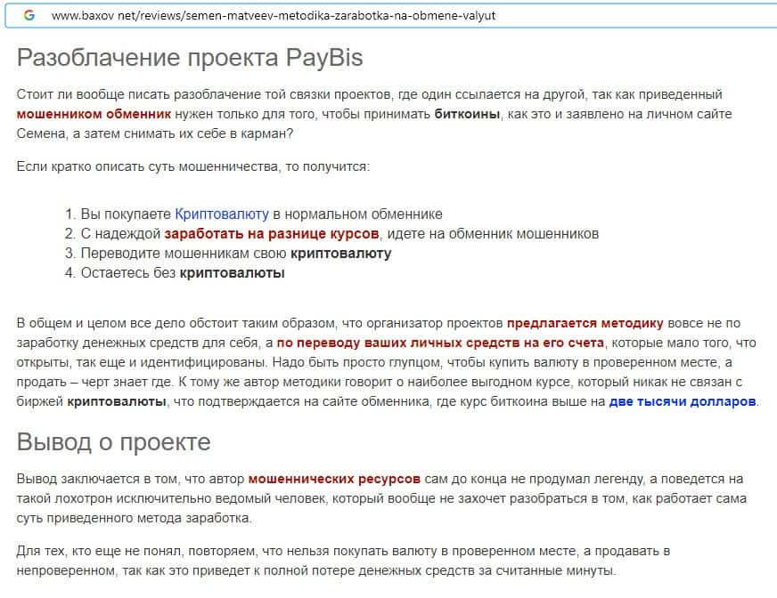 Отзывы о скам-организации PayBis, ныне присутствующие в сети-интернет