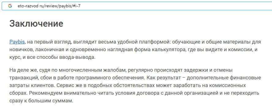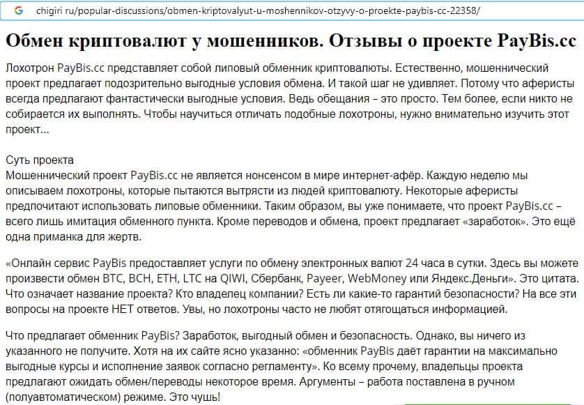 - Отзывы о скам-организации PayBis, ныне присутствующие в сети-интернет