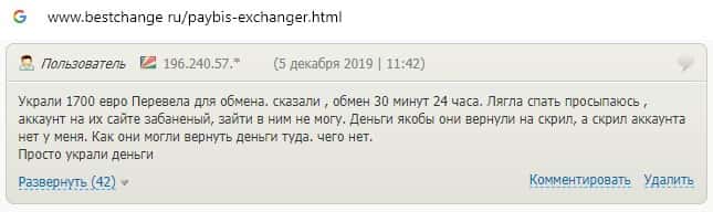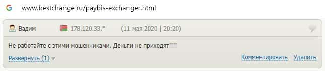 Автор ниже представленного комментария также рассказывает о том, что жулики PayBis украли его деньги и не вывели ни копейки.