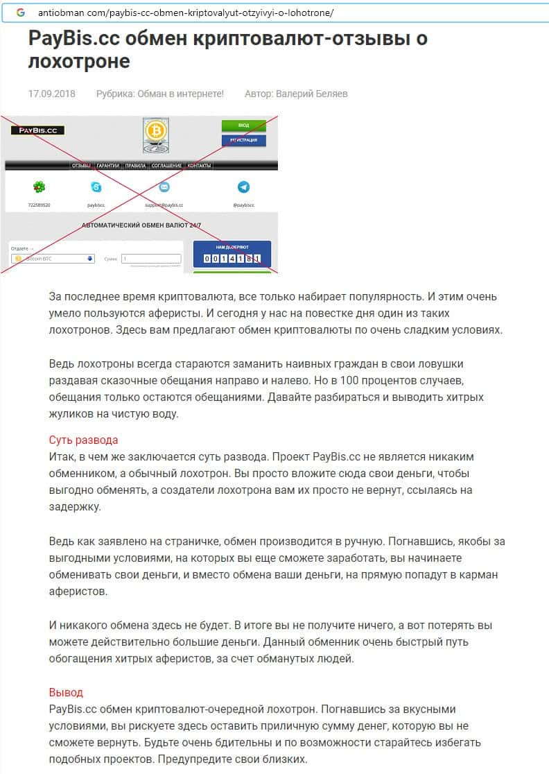 Автором статьи о криптовалютном лохотроне PayBis является Александров Артём Егорович.