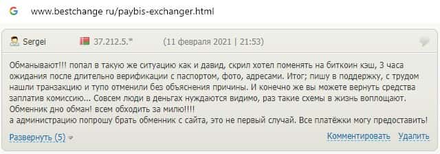 Аферисты PayBis всячески наживаются на людях, предлагая воспользоваться именно их обменником, через который не работает вывод средств.