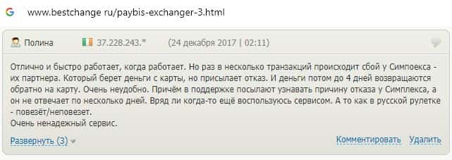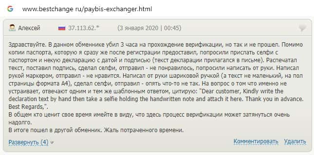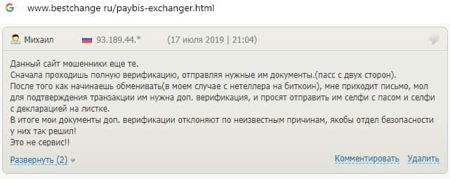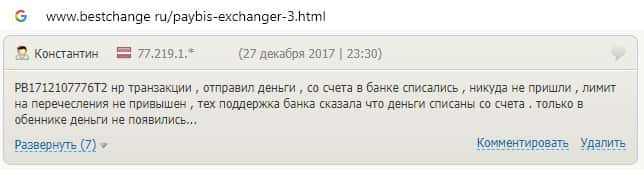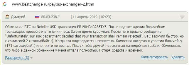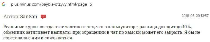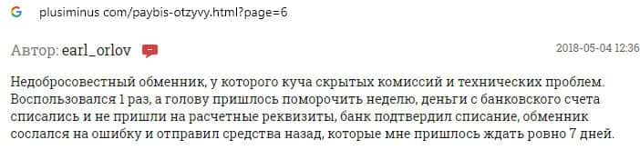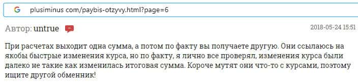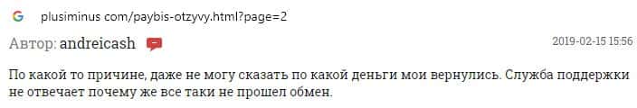 Обменнику Пэй Бис пользователи не доверяют, поскольку курс валют постоянно меняется, а в связи с этим заявки на вывод средств отклоняются.