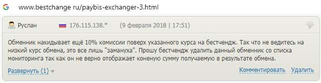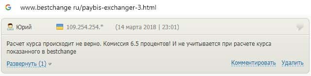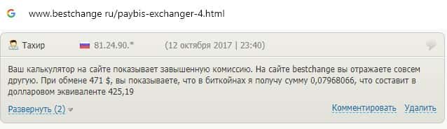 Пользователь пишет, что на сайте обменника Пэй Бис расчет курса происходит не верно, а комиссия заметно завышена, что конечно же не идет на пользу клиентам.