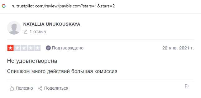 Автор данного отзыва также пишет, что не удовлетворена работой сайта шараги PayBis, поскольку здесь большая комиссия.