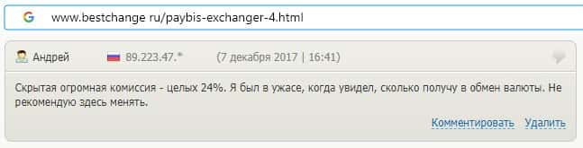 Пользователь также заметил, что на сайте мошеннической компании Пэй Бис есть скрытые комиссии, за счет чего данный обменник наживается на людях.