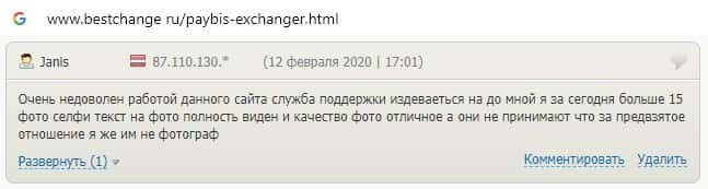 Автор ниже предоставленного комментария не доволен работой скам-организации PayBis, поскольку служба технической поддержки постоянно просит заменить фото для верификации.
