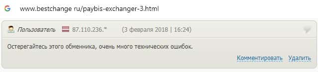 На сайте шулеров Пэй Бис отмечаются сбои в работе программного обеспечения, частые технические неполадки и невероятные комиссии за перевод средств через обменник.