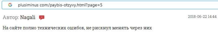 Далее предлагаем ознакомиться с примером того, как на сайте мошенников Пэй Бис происходят технические ошибки, на которые жалуются пользователи.