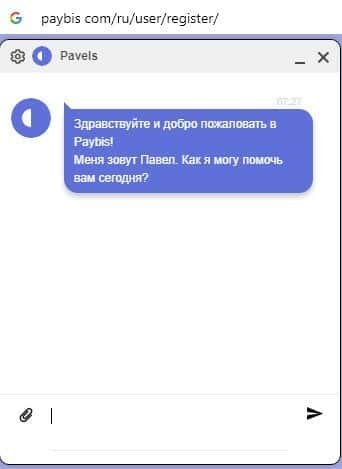 Также шулера Пэй Бис предоставили в качестве обратной связи онлайн-чат, при помощи которого ведут сбор данных о клиенте, фиксируя все данные на сайте.