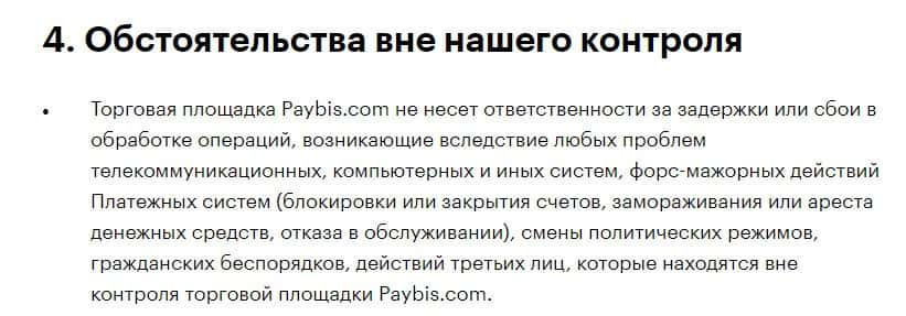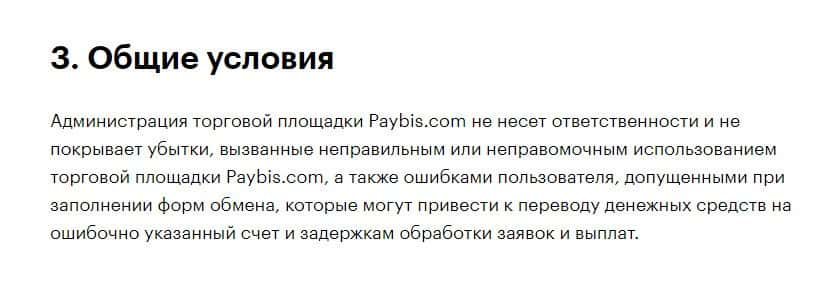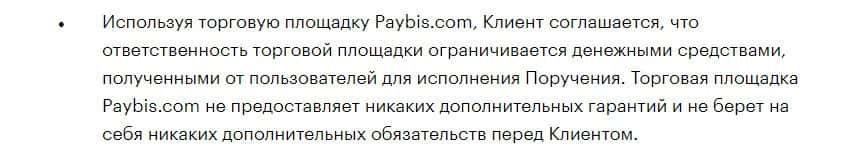 Согласно тому, что аферисты пишут в соглашении, скам-контора Пэй Бис не несет никакой ответственности за не полученную прибыль клиентом, а также за возможные убытки.