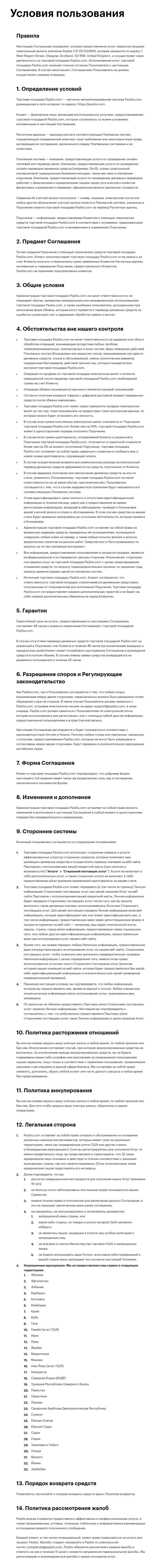 Клиентское соглашение мошеннической организации PayBis