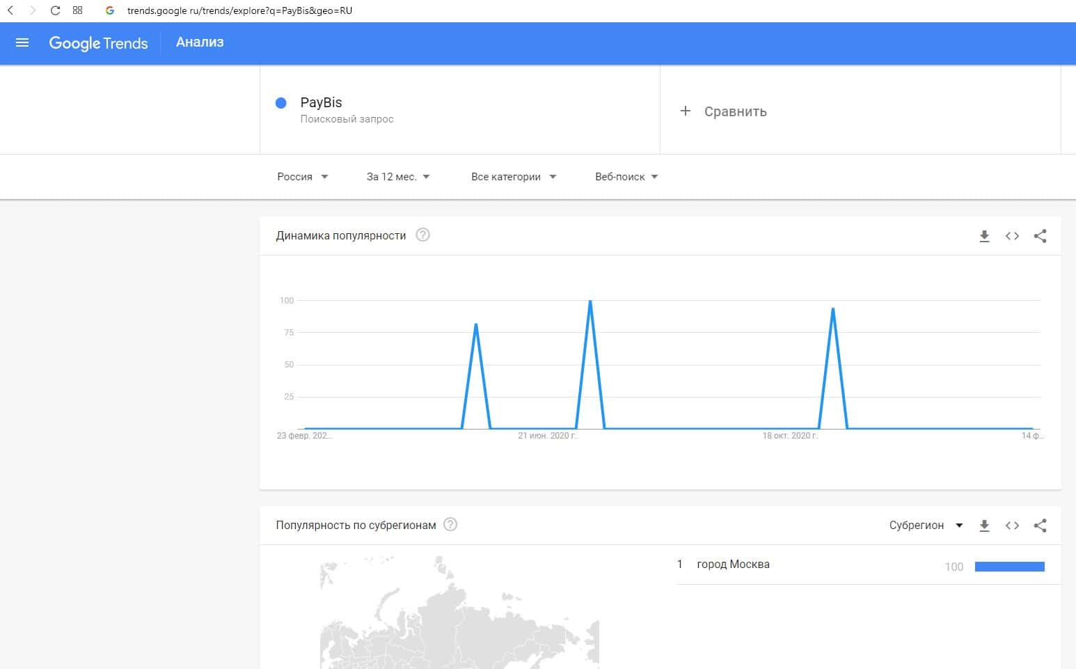 О количестве брендовых запросов названия компании на русском языке "Пэй Бис" на trends google ru ничего не известно.
