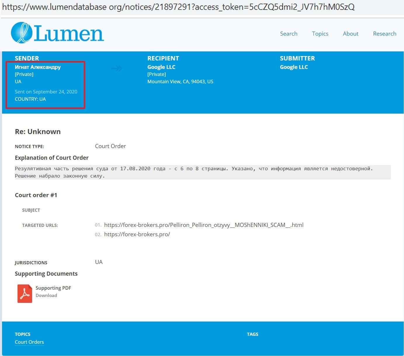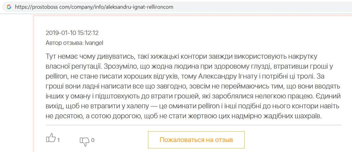 Доказательство фальшивых отзывов о махинаторах Pelliron