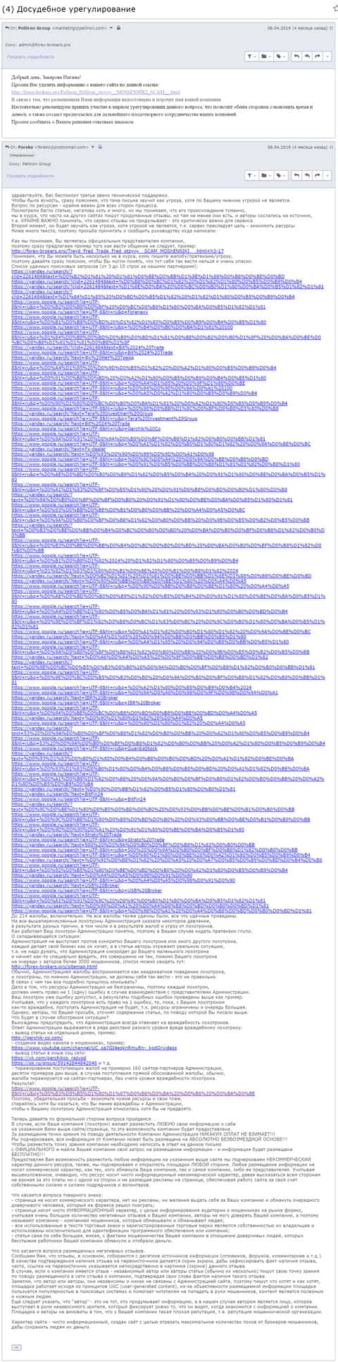 - Пользователь взывает к совести авторов положительных отзывов о кидалах Pelliron