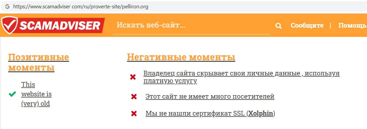 - Информация о проекте кидал Пеллирон от интернет ресурса scamadviser com