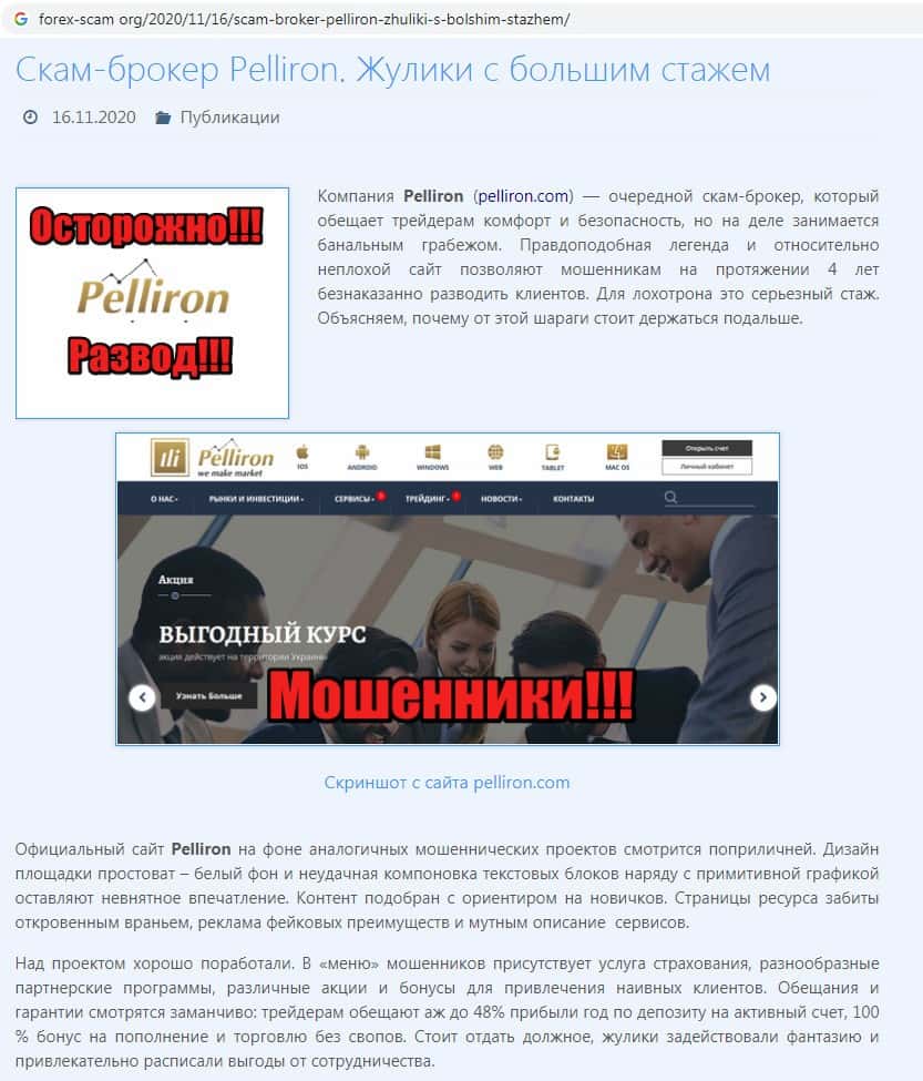 - Разоблачение мошенников Пеллирон на форекс-скам орг