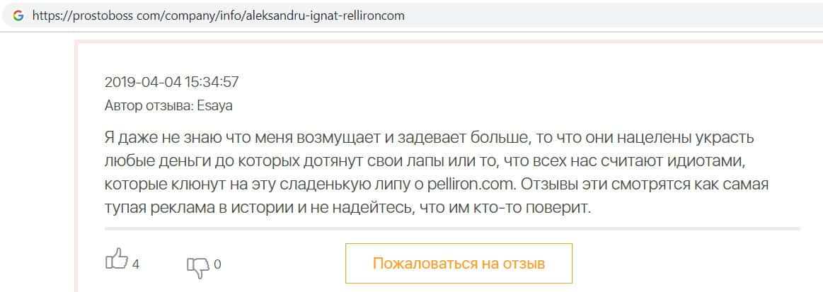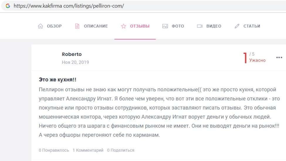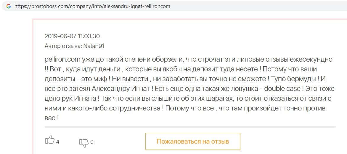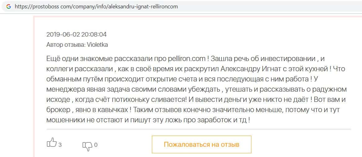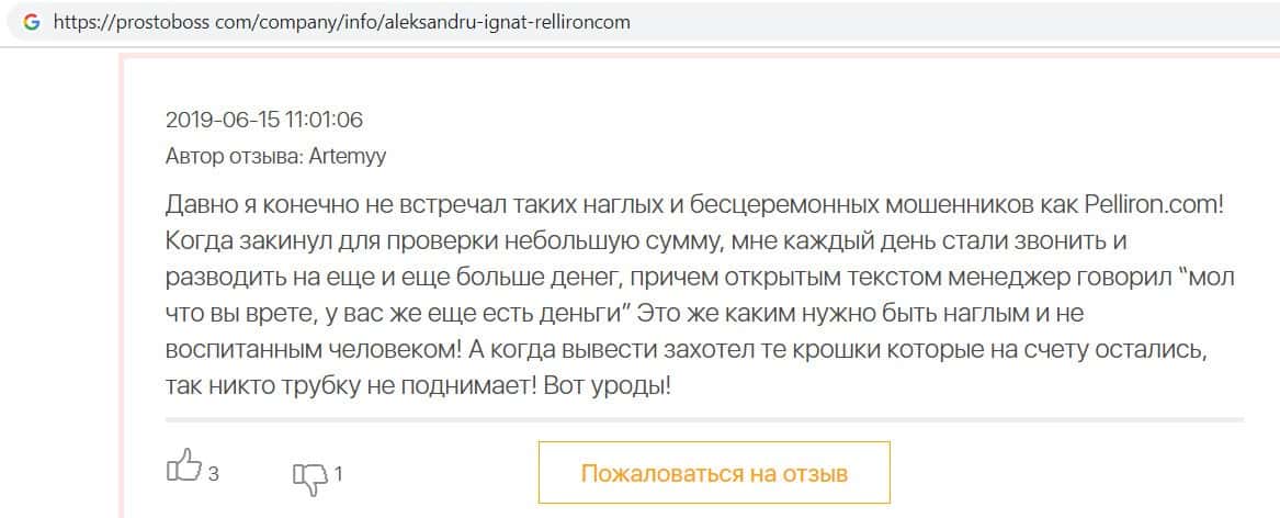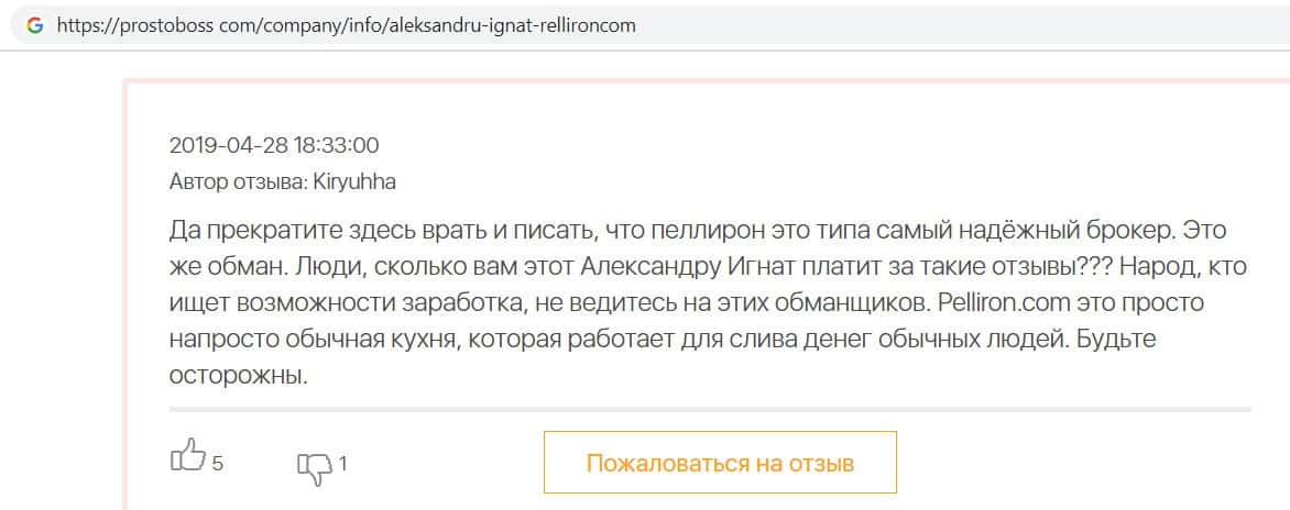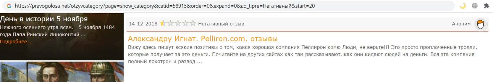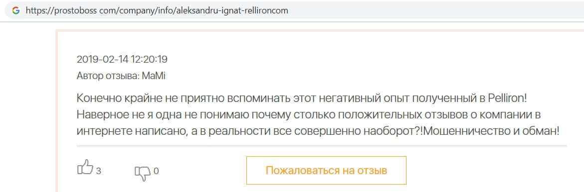 - Фальшивые отзывы о аферистах Пеллирон заставляют пользователей терять денежные средства