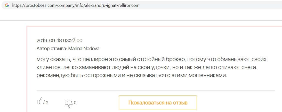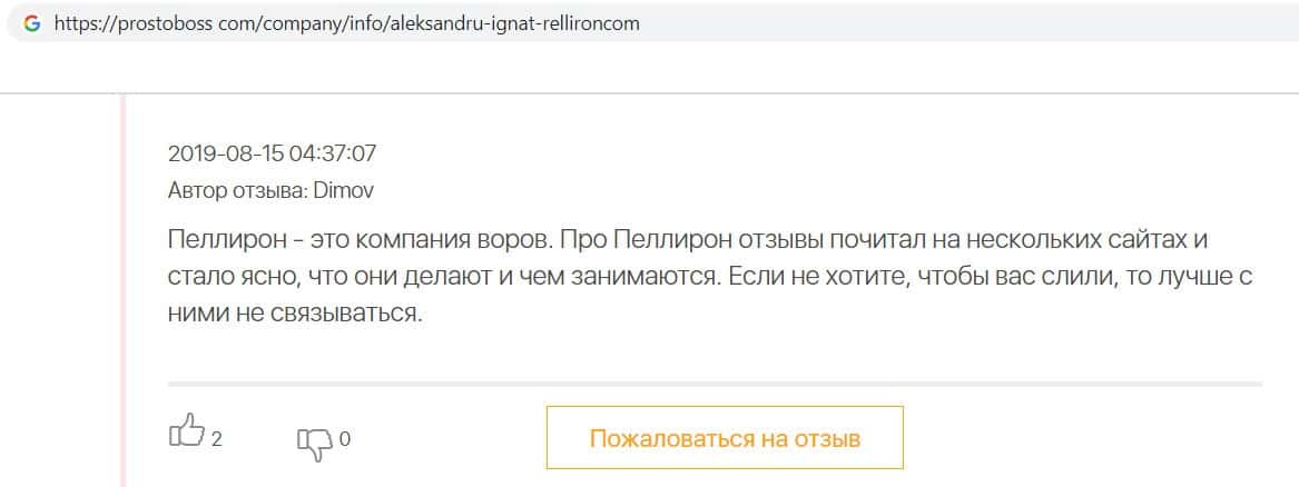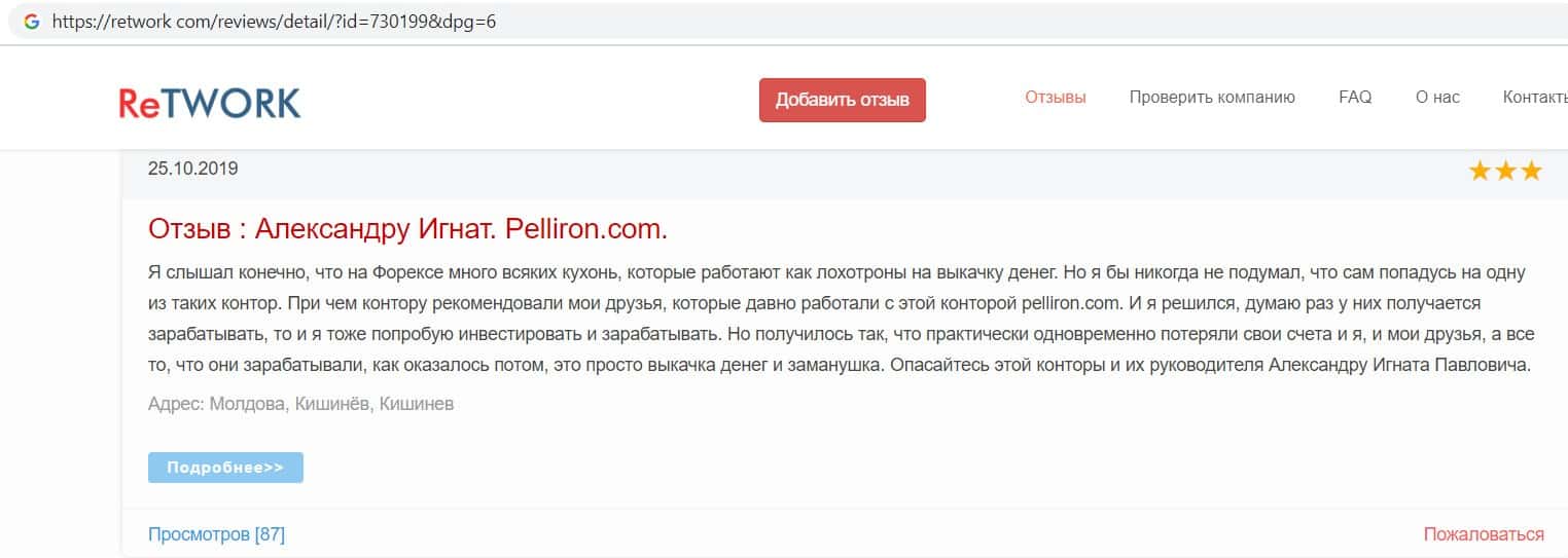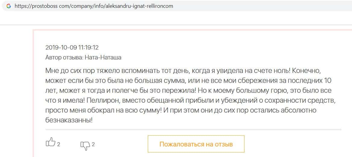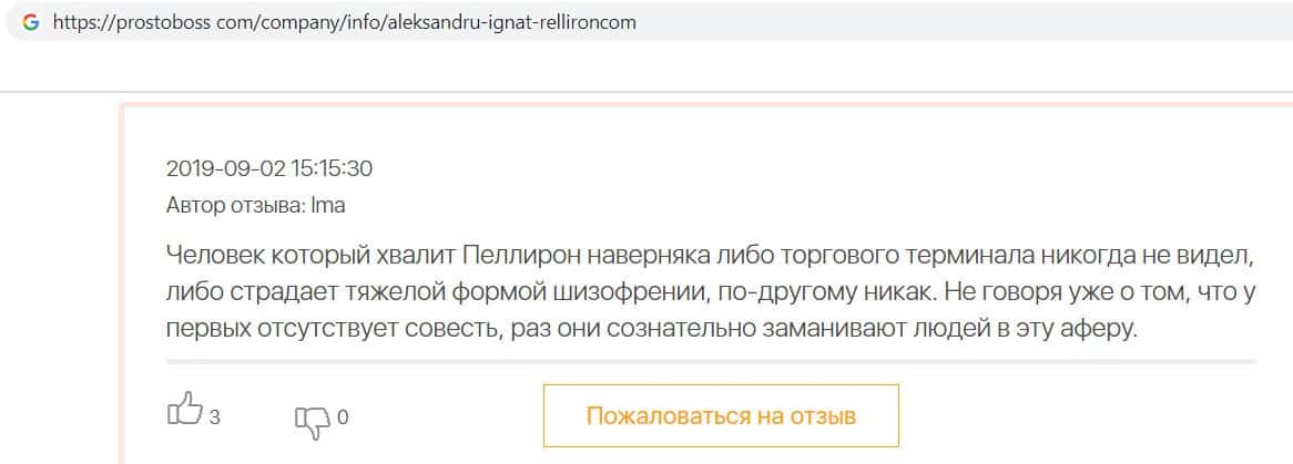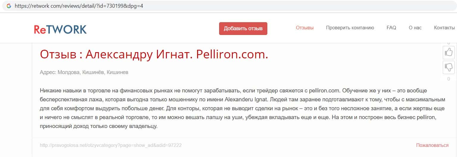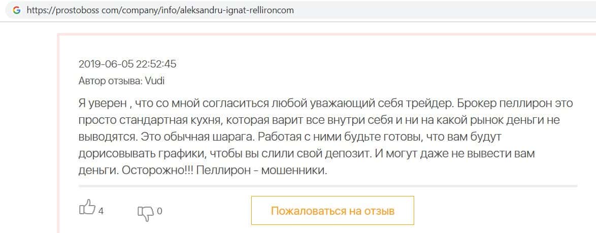 - Фальшивые отзывы о аферистах Пеллирон заставляют пользователей терять денежные средства