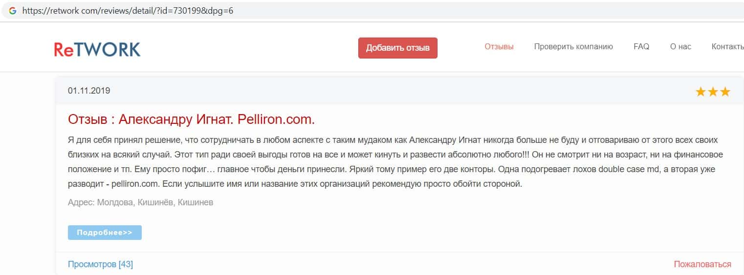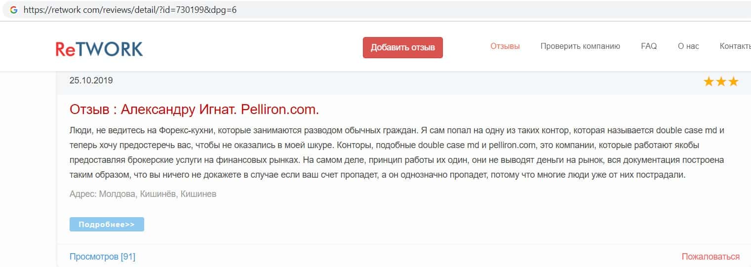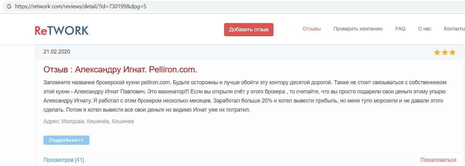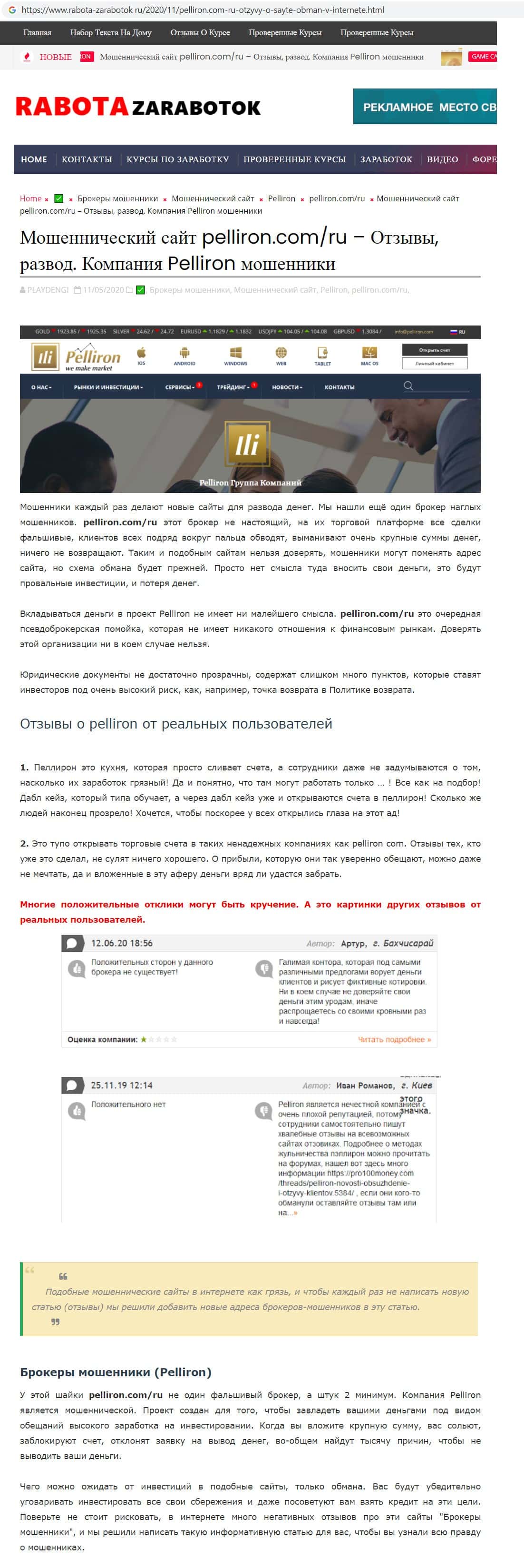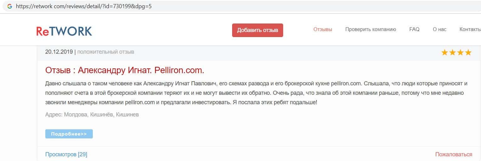 - Фальшивые отзывы о аферистах Пеллирон заставляют пользователей терять денежные средства