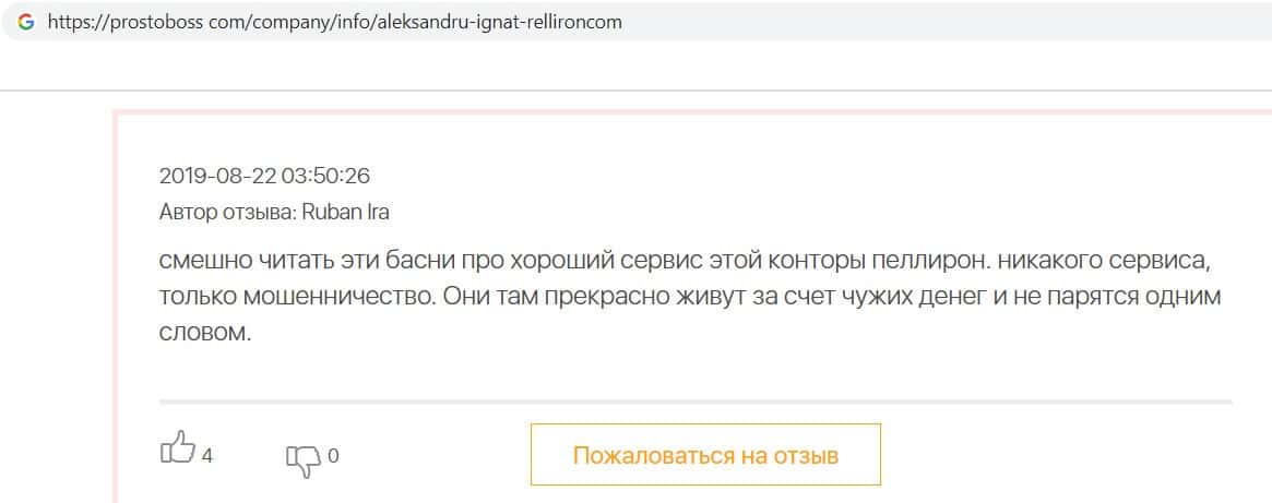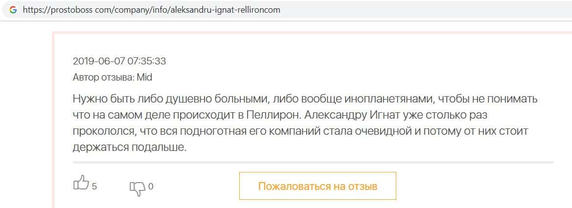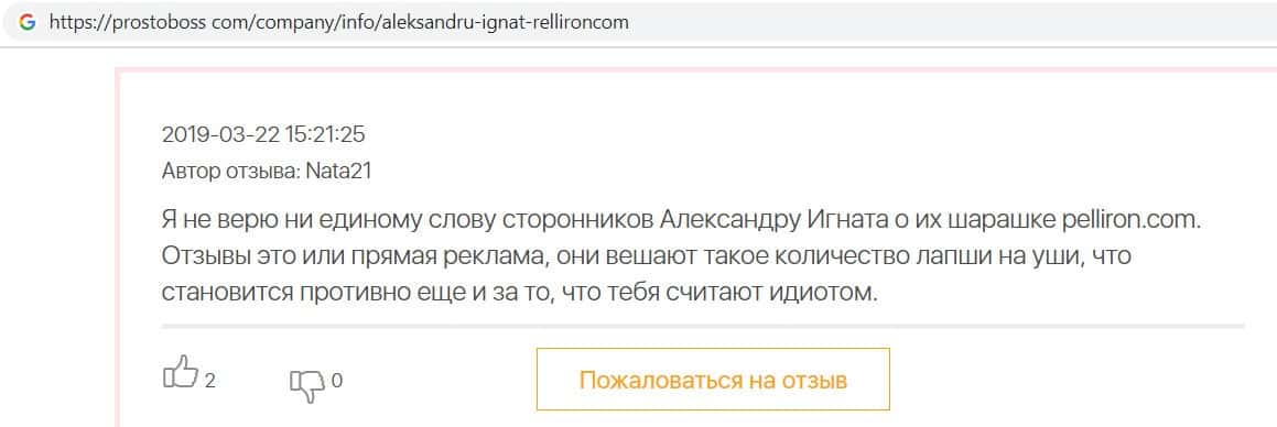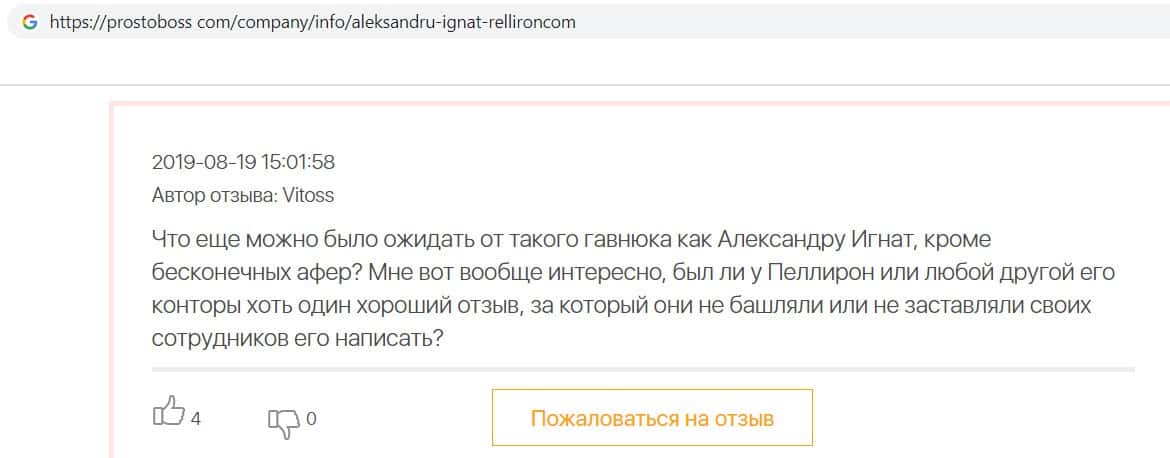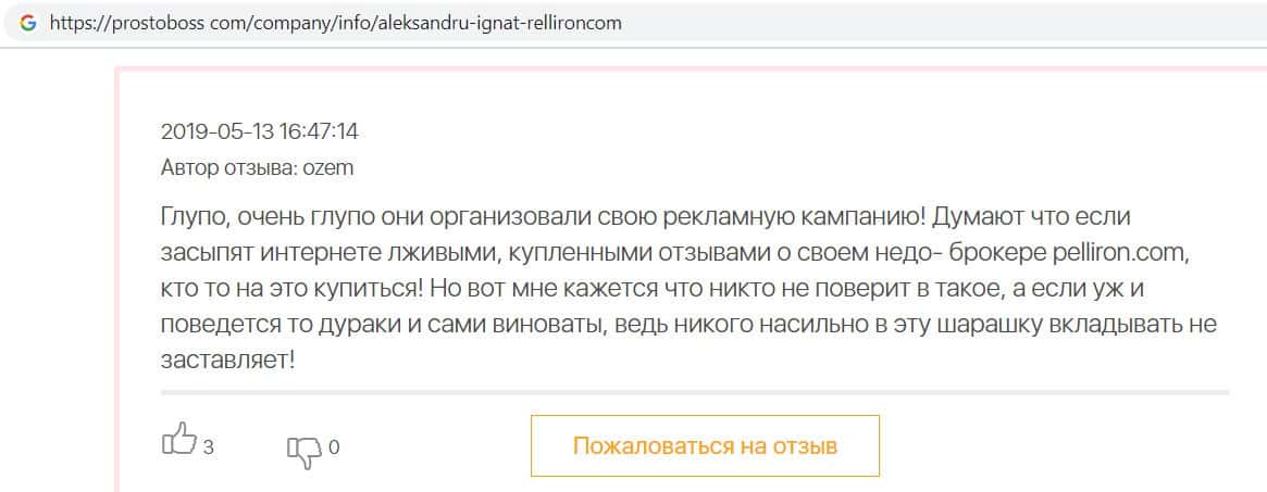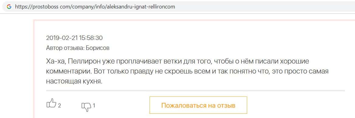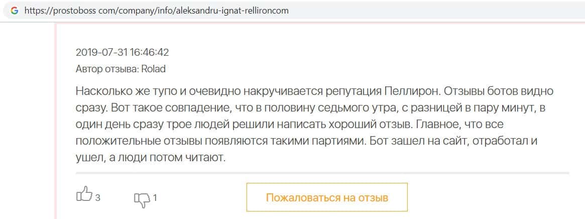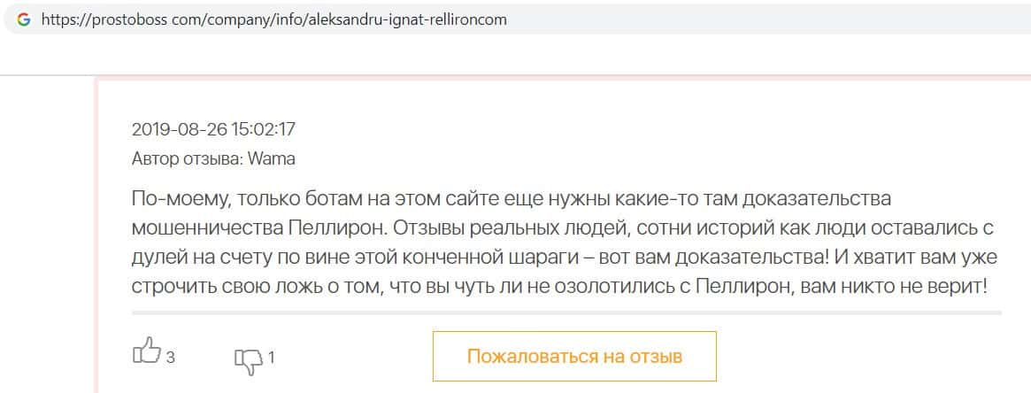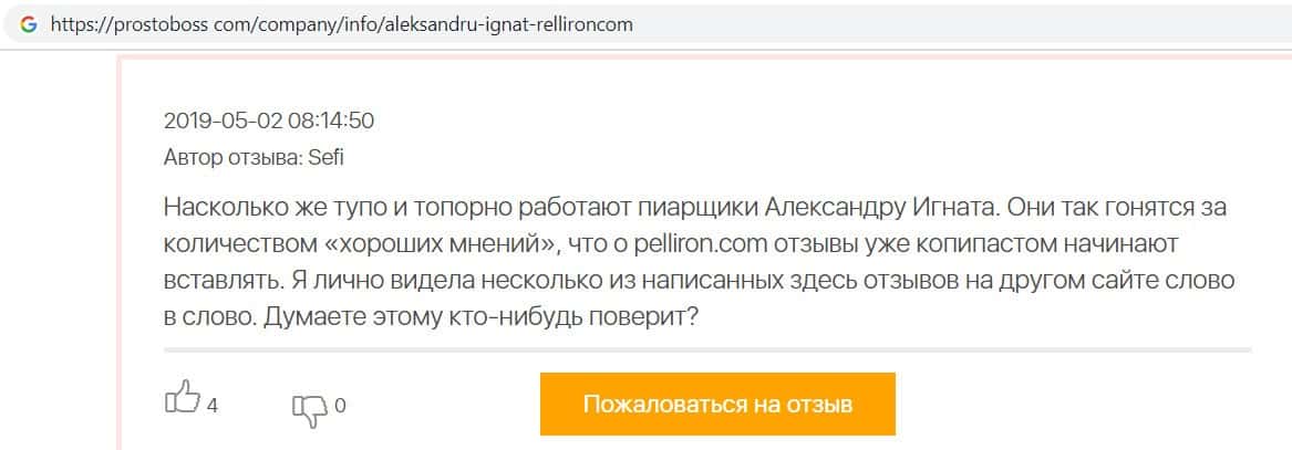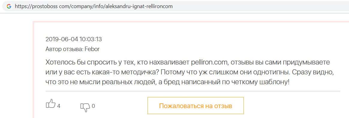 - Авторы заказных отзывов о жуликах Пеллирон себя не уважают