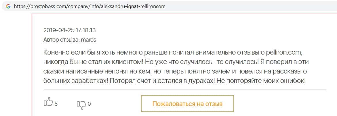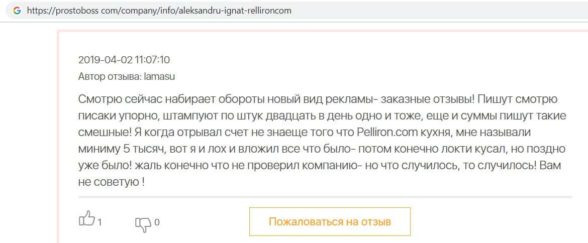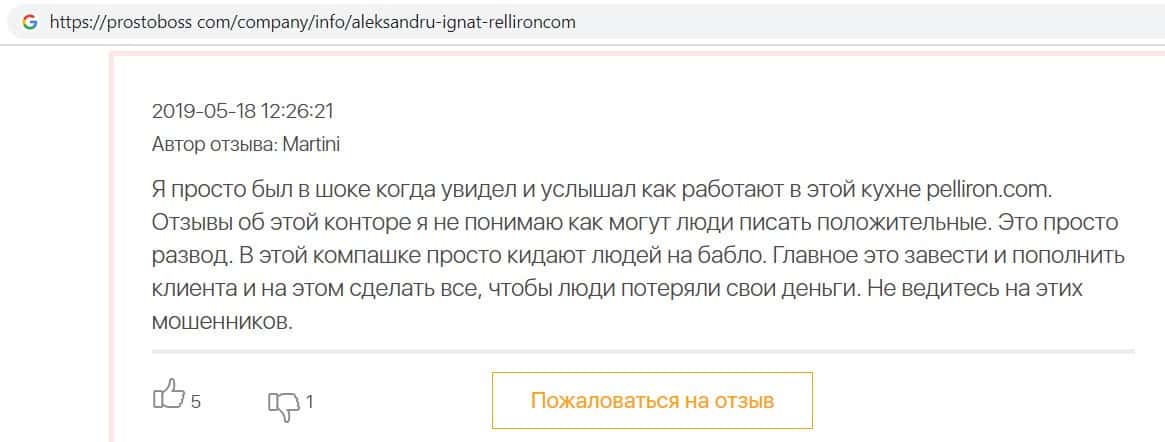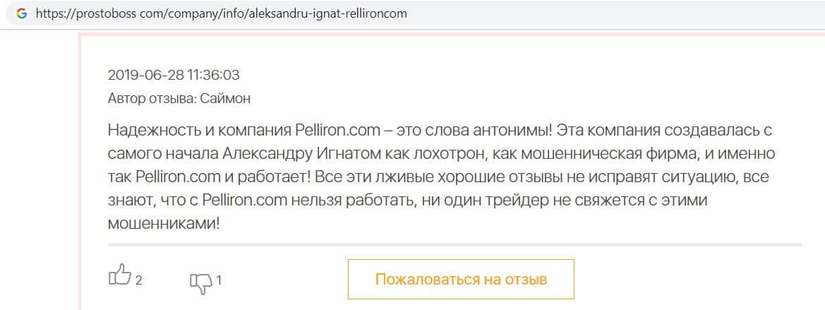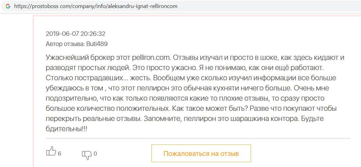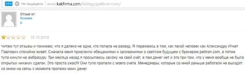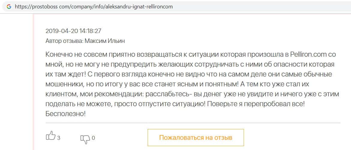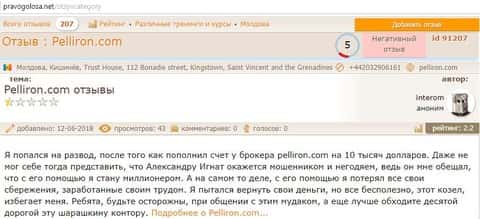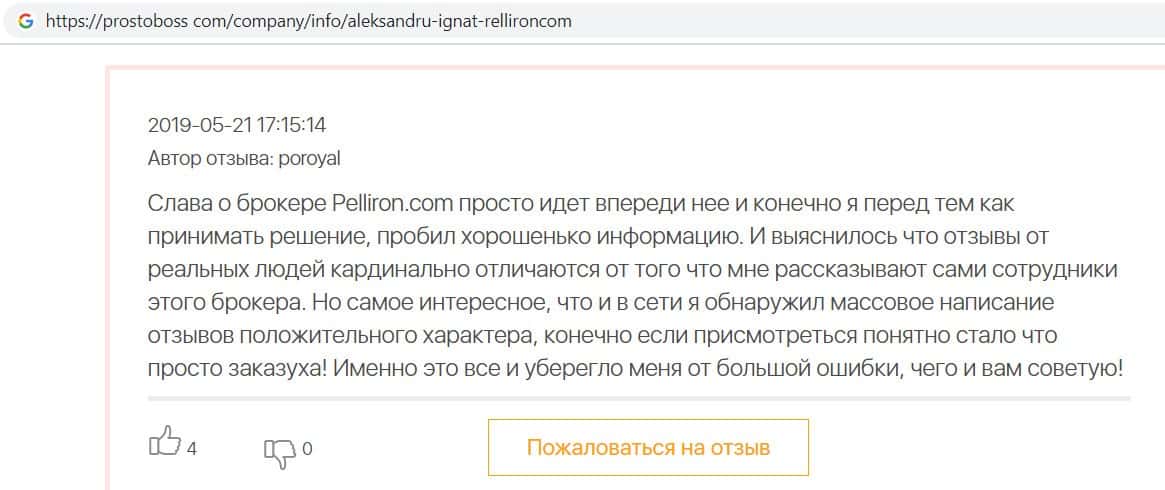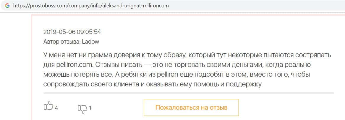 - Пользователь не поверил негативным отзывам о махинаторах Pelliron