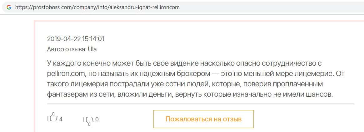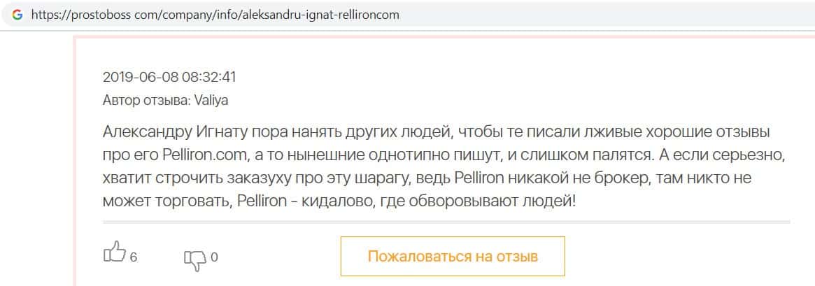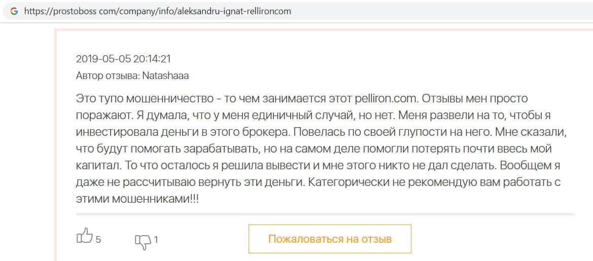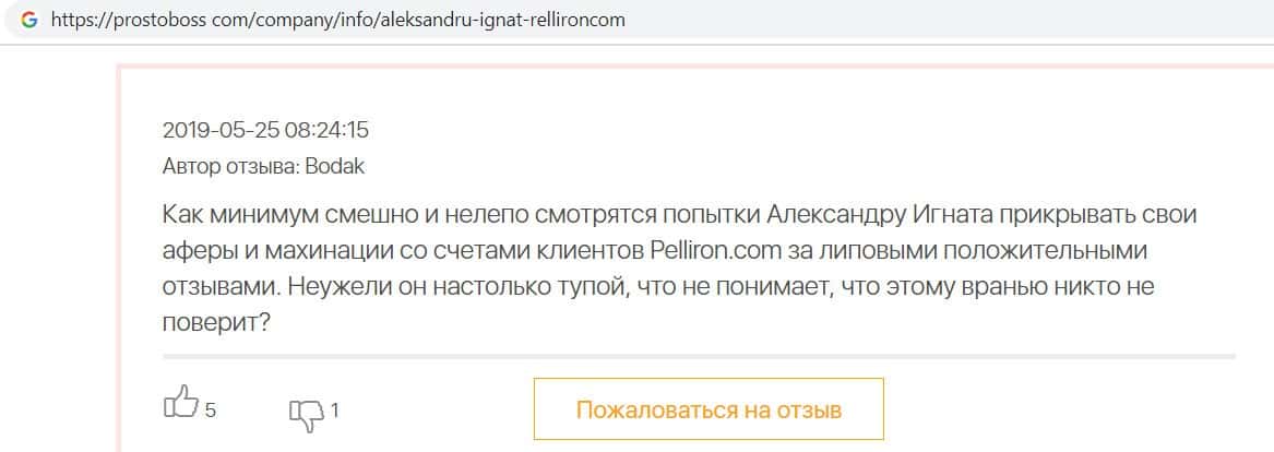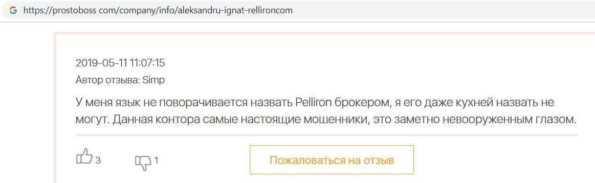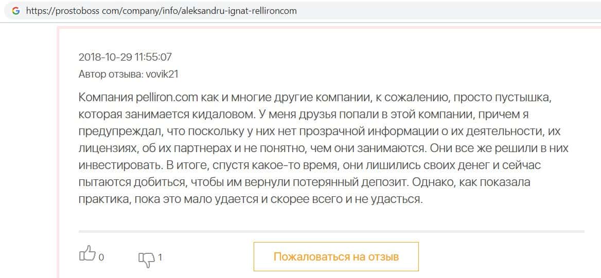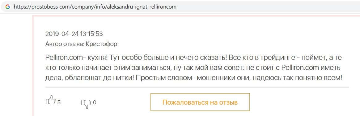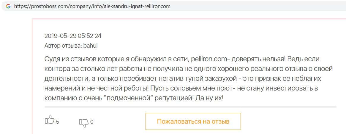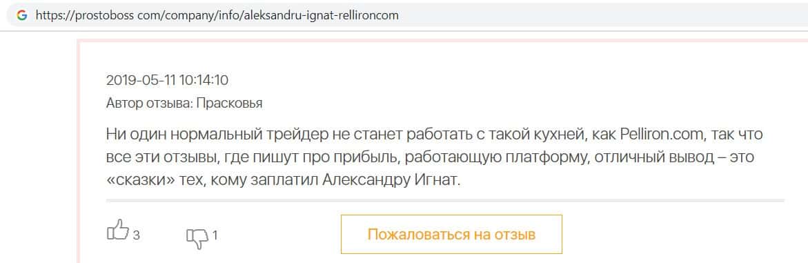 - Пользователь не поверил негативным отзывам о махинаторах Pelliron