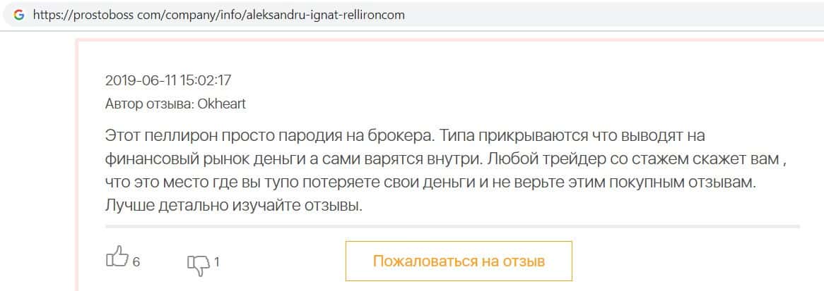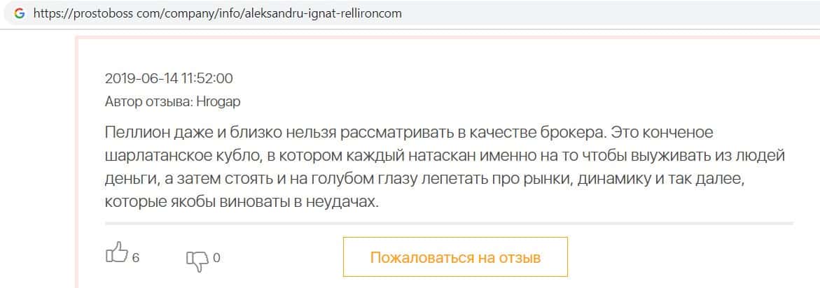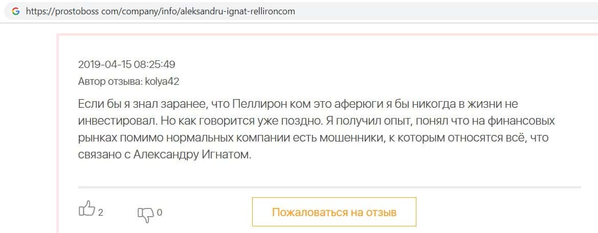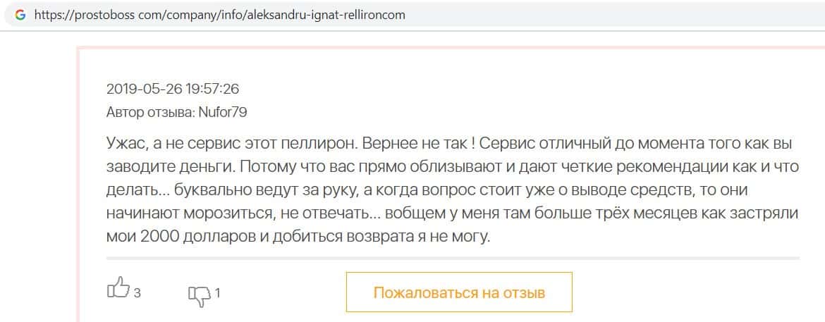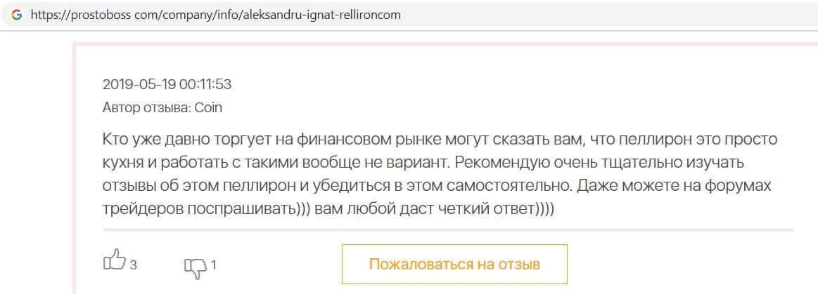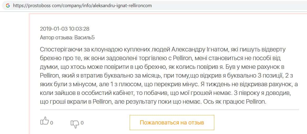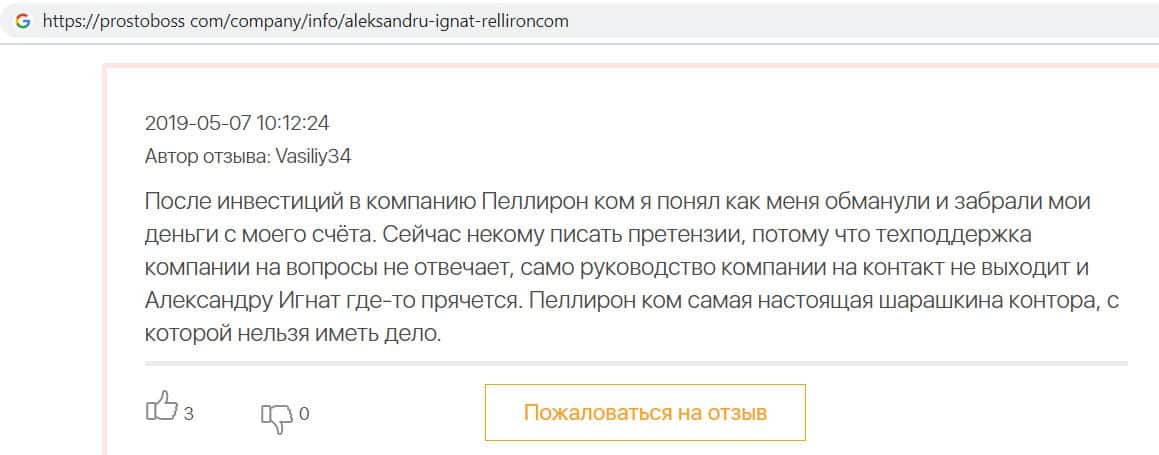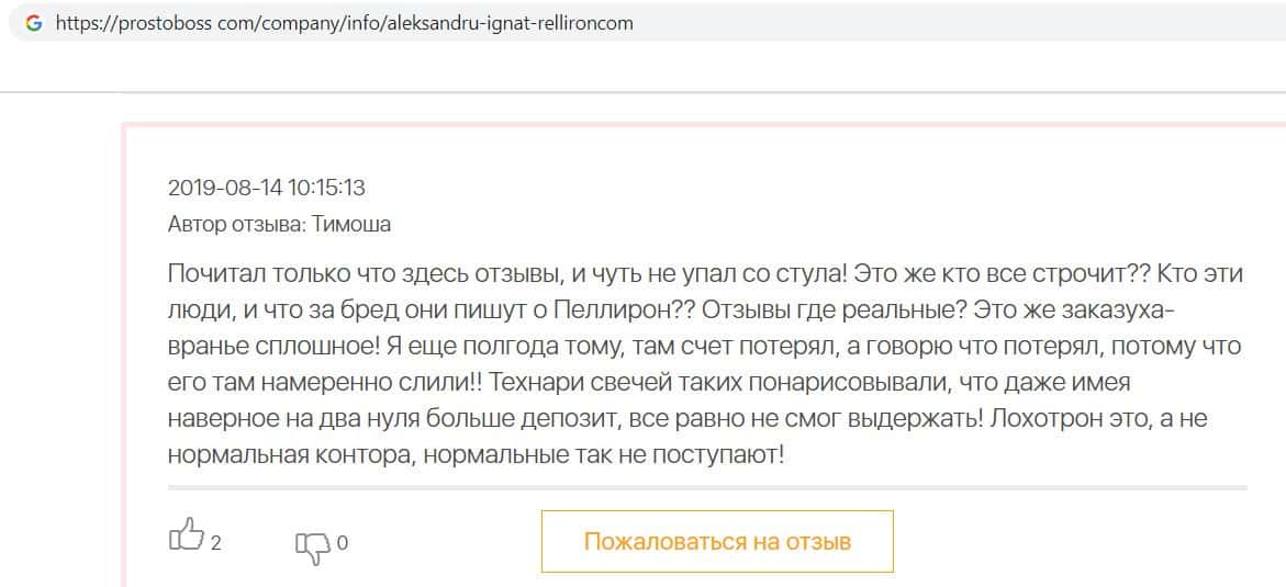 - Пользователь не поверил негативным отзывам о махинаторах Pelliron