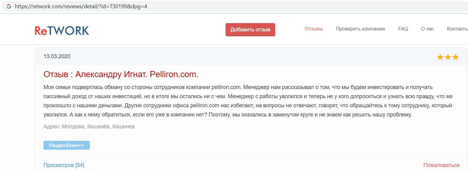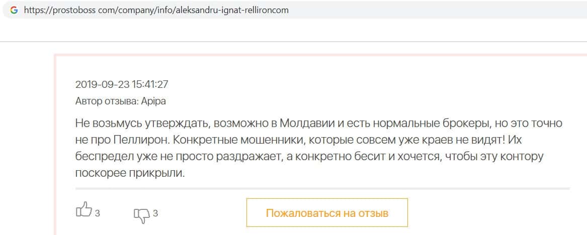 - У пользователя остался плохой осадок после сотрудничества с мошенниками Пеллирон