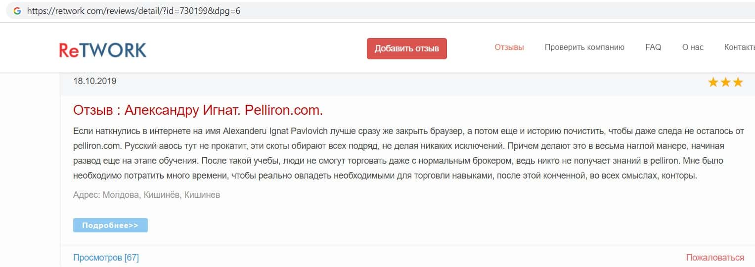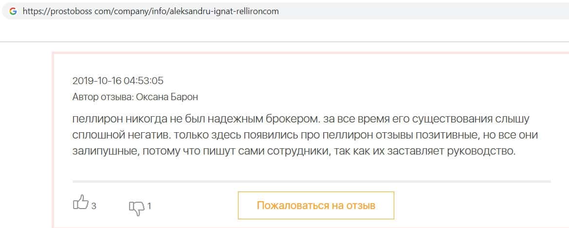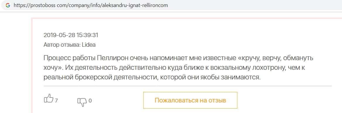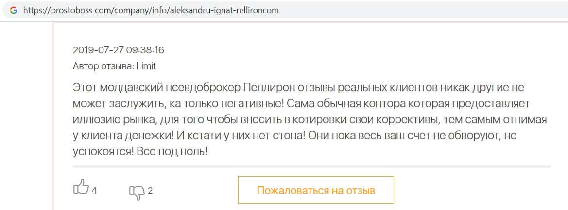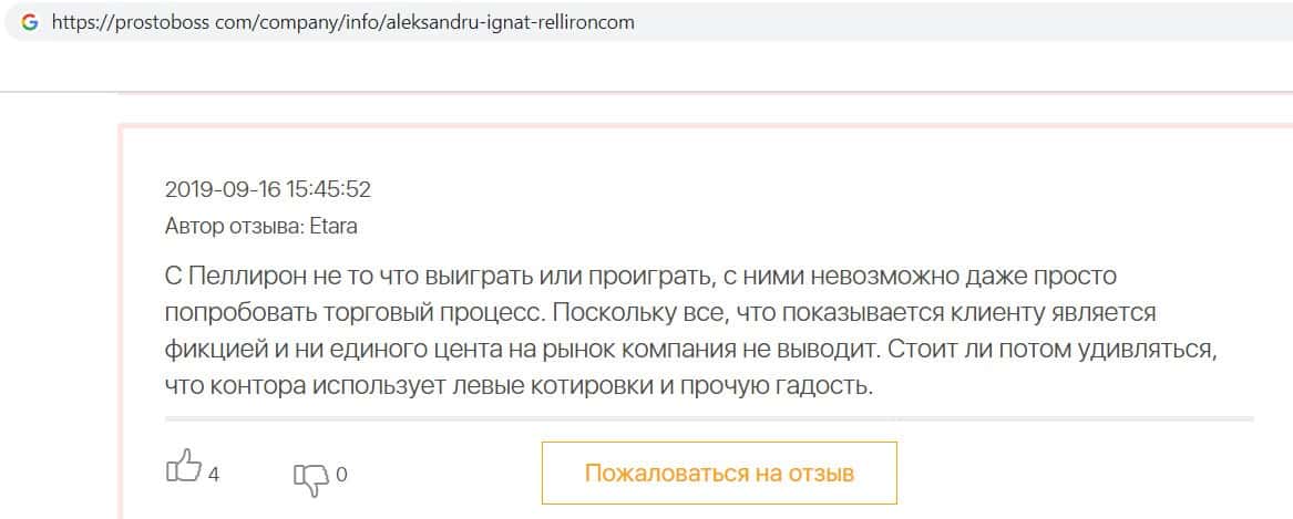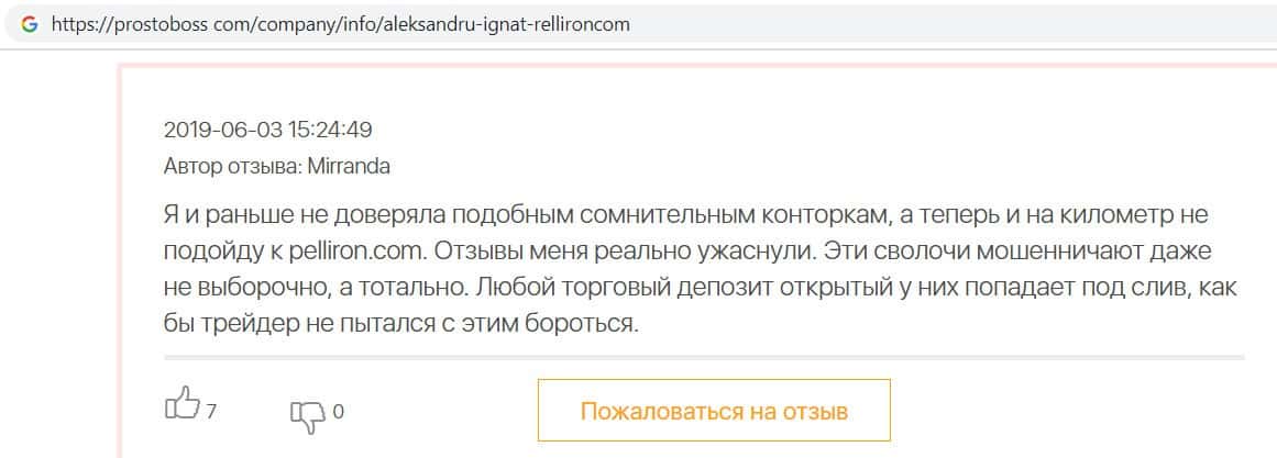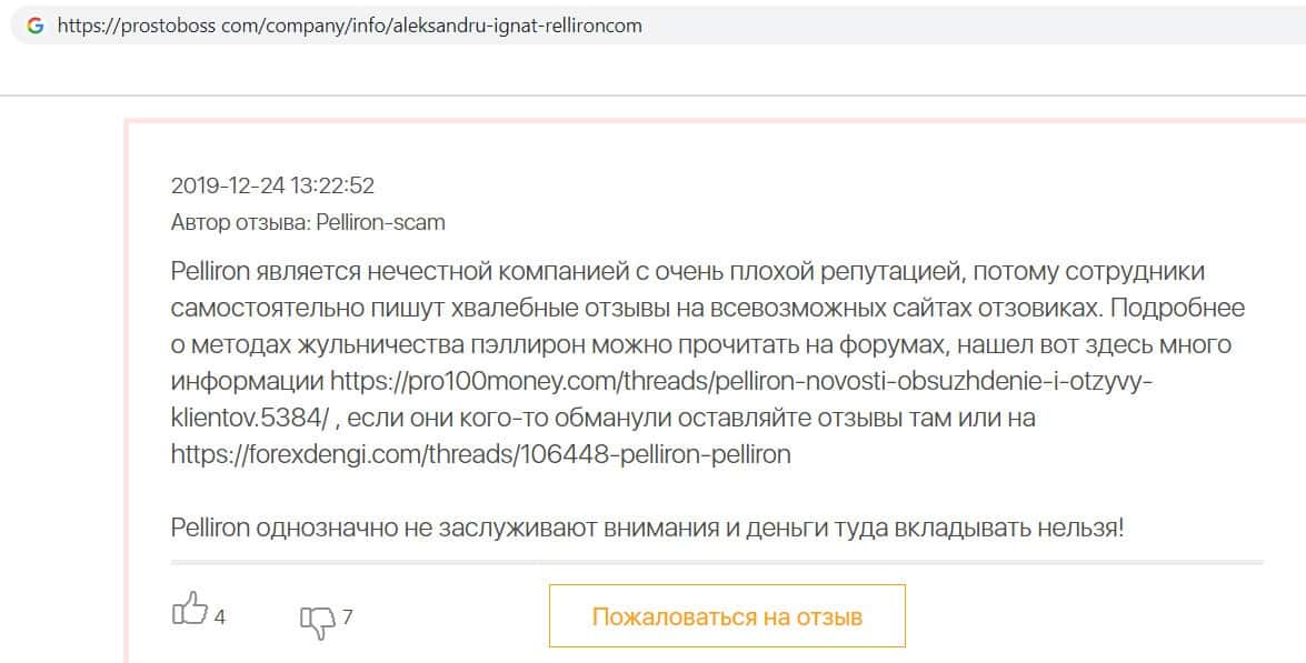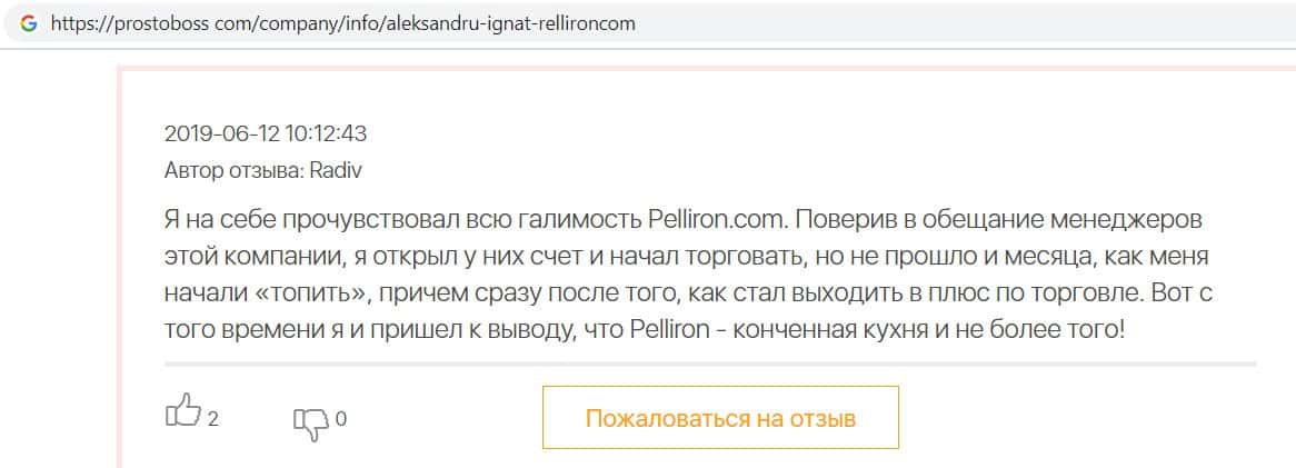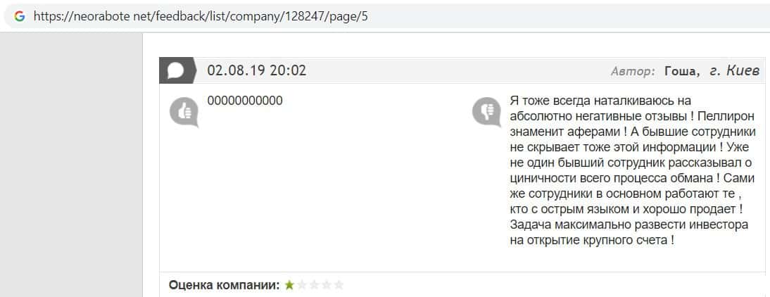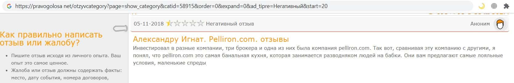 Сеть заполнена негативными отзывами о форекс-конторе Пеллирон
