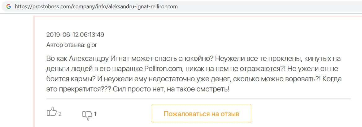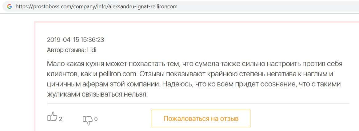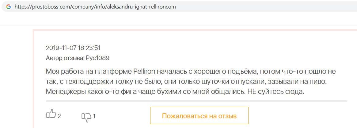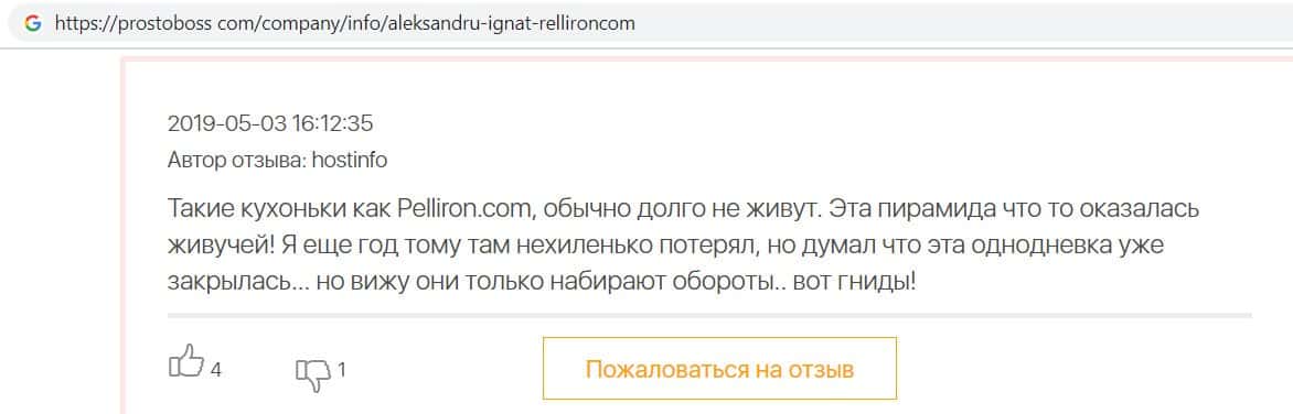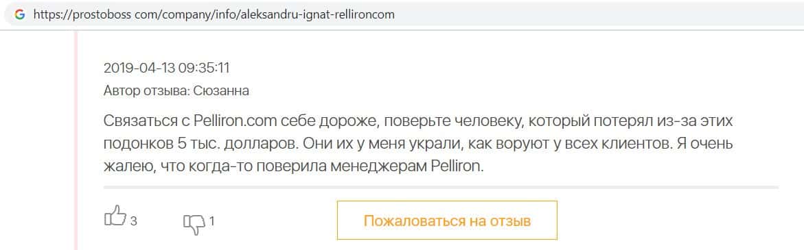 - Пользователям неприятно вспоминать опыт с компанией Pelliron