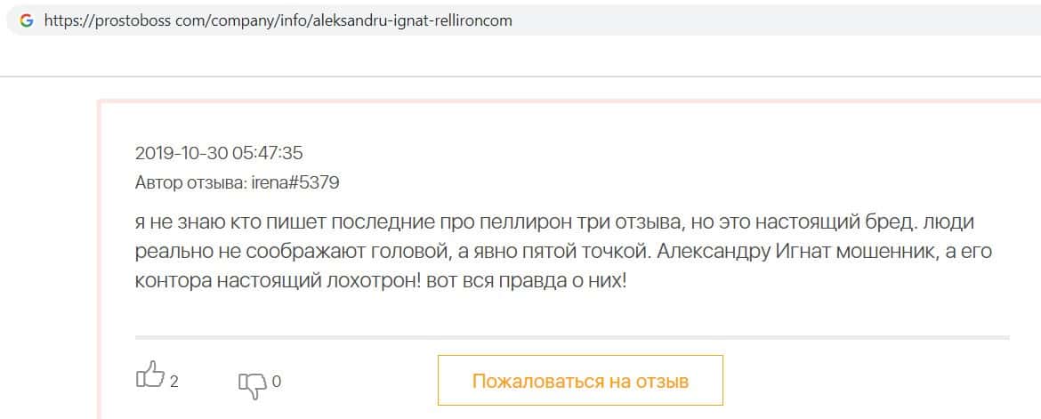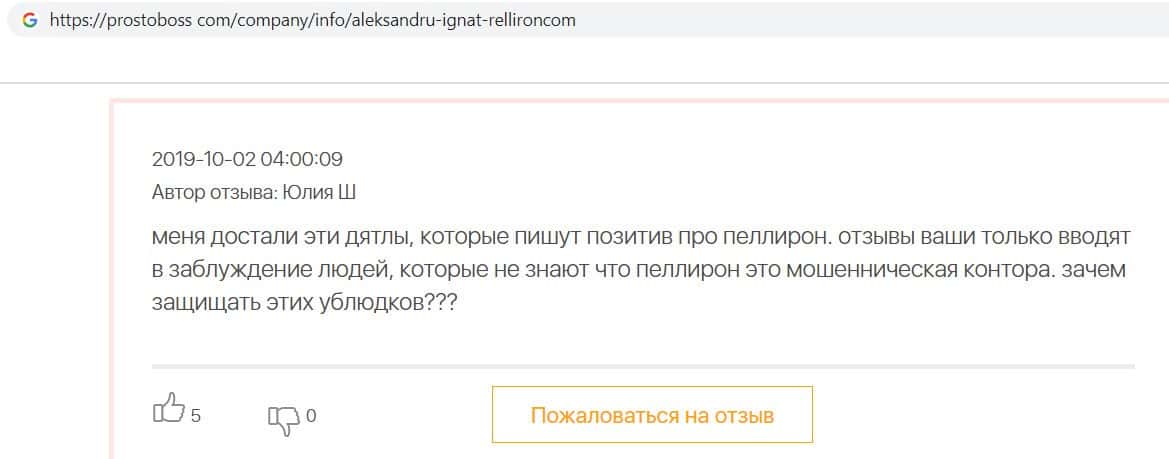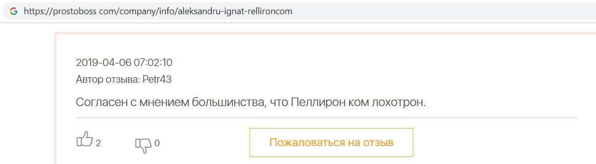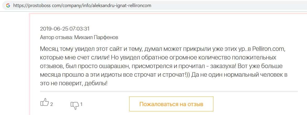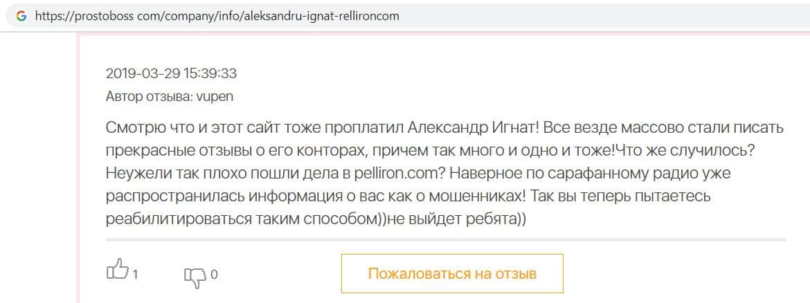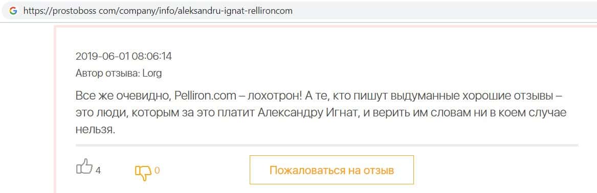 - Все положительные отзывы о лохотроне Pelliron являются заказухой