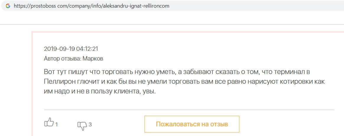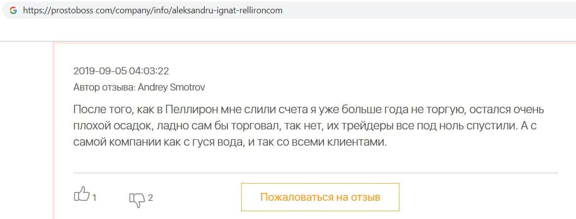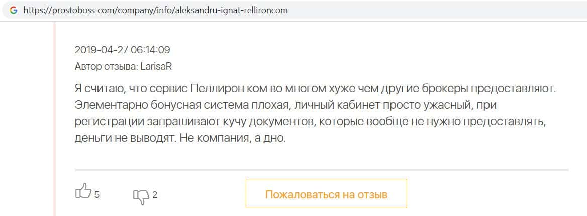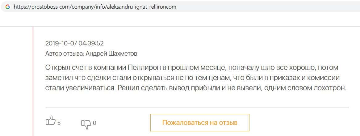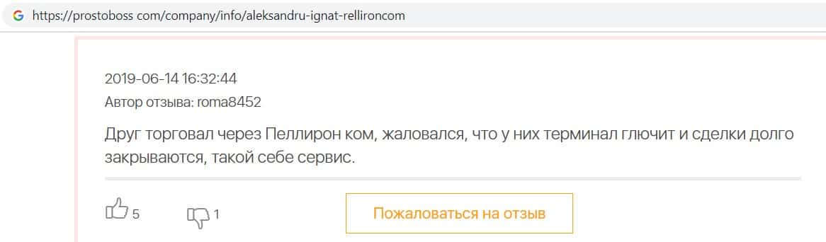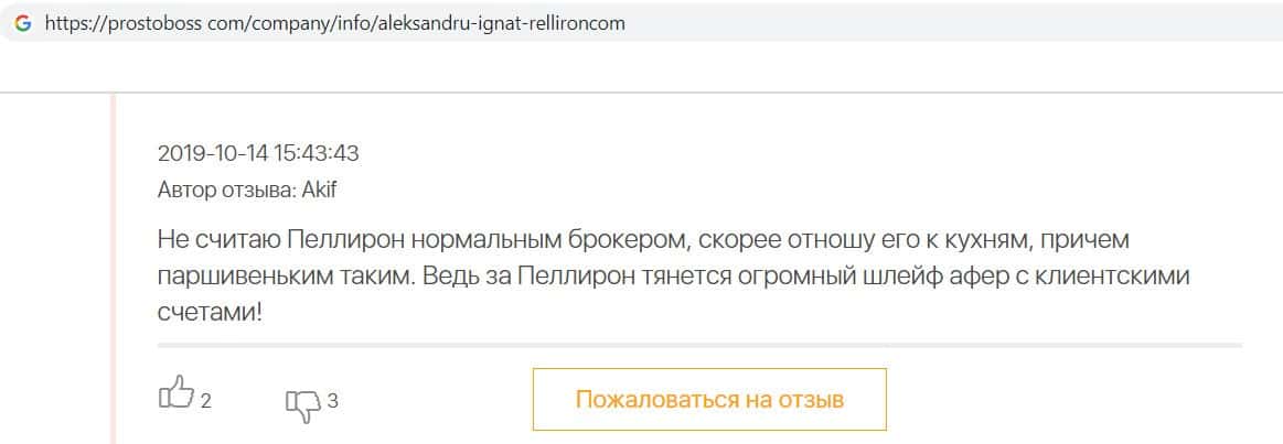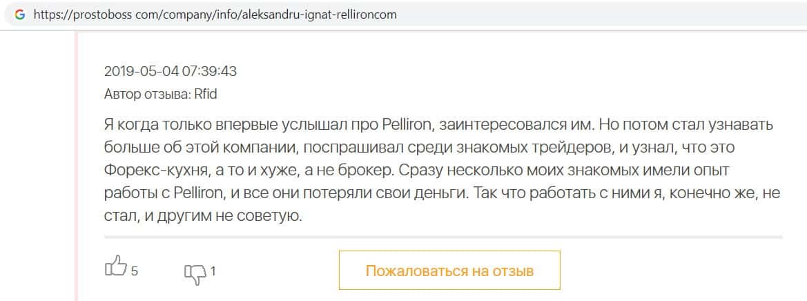 - Пользователь не считает компанию Pelliron нормальным брокером