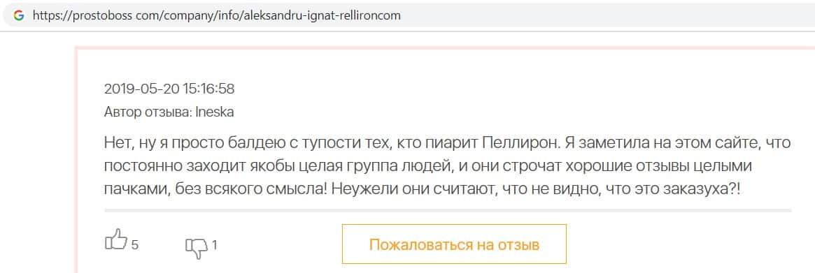 - Заказные отзывы о Пеллирон вводят в заблуждение наивных пользователей