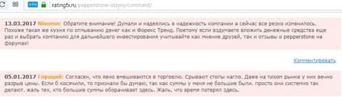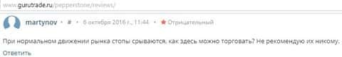 Еще несколько человек высказалось по поводу сомнения в надежности компании и не знают теперь как выкрутиться из сложившейся ситуации. Мошенники Пепперстон ведут себя как компания по отмыванию денег, при чем так говорит уже не первый человек, попавшийся на удочку к мошенникам. А другой бывший клиент высказался по поводу вмешательства аферистов в торговлю на его счете. Это заметно по стопам, которые время от времени просто срывают, а потом все сваливают на рынок.