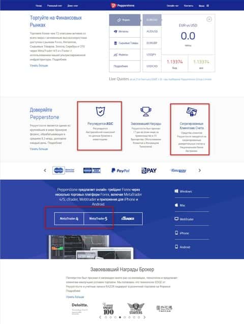 Про регулятор ASIC, который якобы выдал разрешение на деятельность конторы Пепперстон, мы еще раз скажем, что он дает право вести деятельность только в Австралии. А вот сегрегированные клиентские счета это уже перебор и вряд ли 200 долларов клиента будут находится в нацбанке Австралии, учитывая что счет в этом банке может открыть только резидент страны. И куда же без знаменитой форексовской штучки - торговый терминал MetaTrader 4 и MetaTrader 5 - форекс-мошенники обожают этот терминал, так как он позволяет использовать кухонные методы по отношению к клиенту.