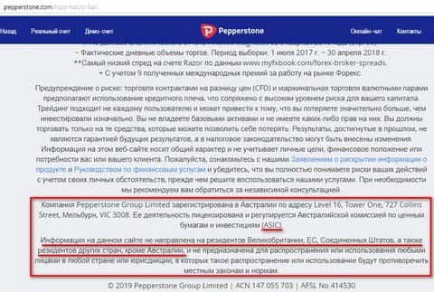 Лицензия от ASIC ДЦ Пепперстон не имеет юридической силы в других странах