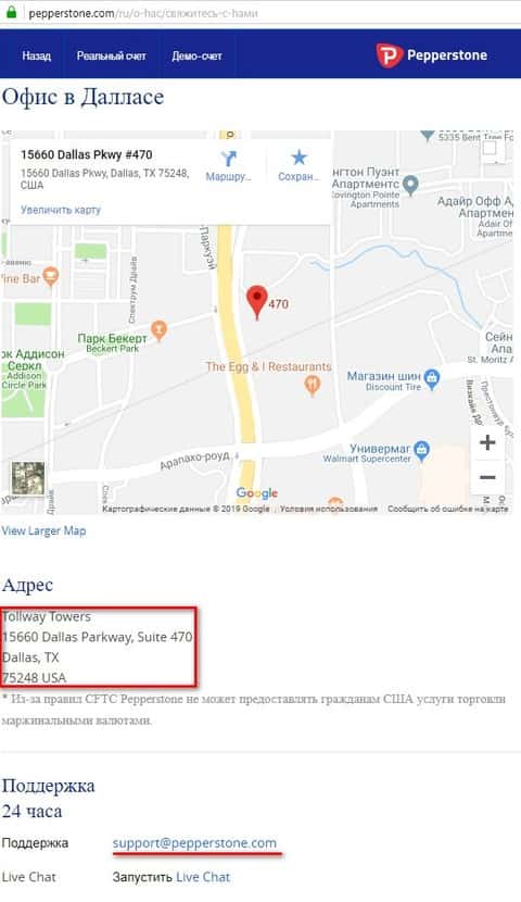 А это офис дилинговой форекс-конторы Пепперстоне в Далласе, США и все его данные: