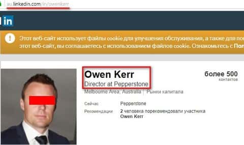 А вот собственно говоря и фотография основателя и директора кухни Pepperstone Owen Kerr. Его данные мы нашли на странице в социальных сетях linkedin com.