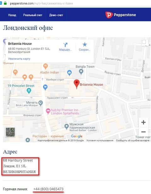 Ну и наконец-то последний офис преступной компании Пепперстон размещенный в Лондоне и его данные: