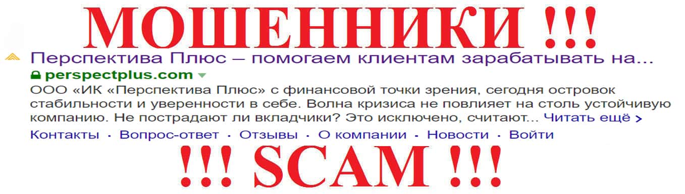 Перспектива Плюс - это очередная мошенническая финансовая пирамида, которая под предлогом инвестиций выманивает у своих клиентов деньги, а те им отдают, так как руководство данной конторы очень убедительно, а финансовая грамотность пользователей интернета оставляет желать лучшего. Не ведитесь на развод со стороны Перспектива Плюс.