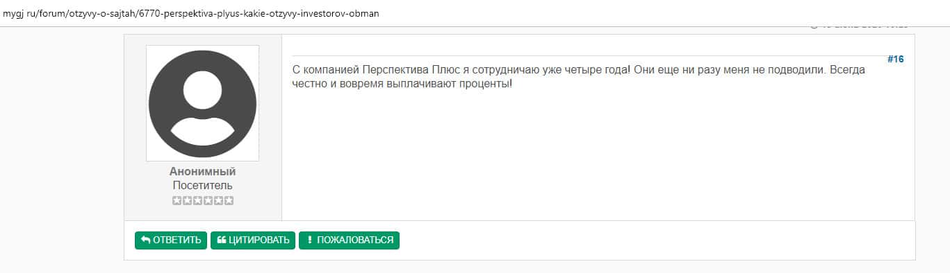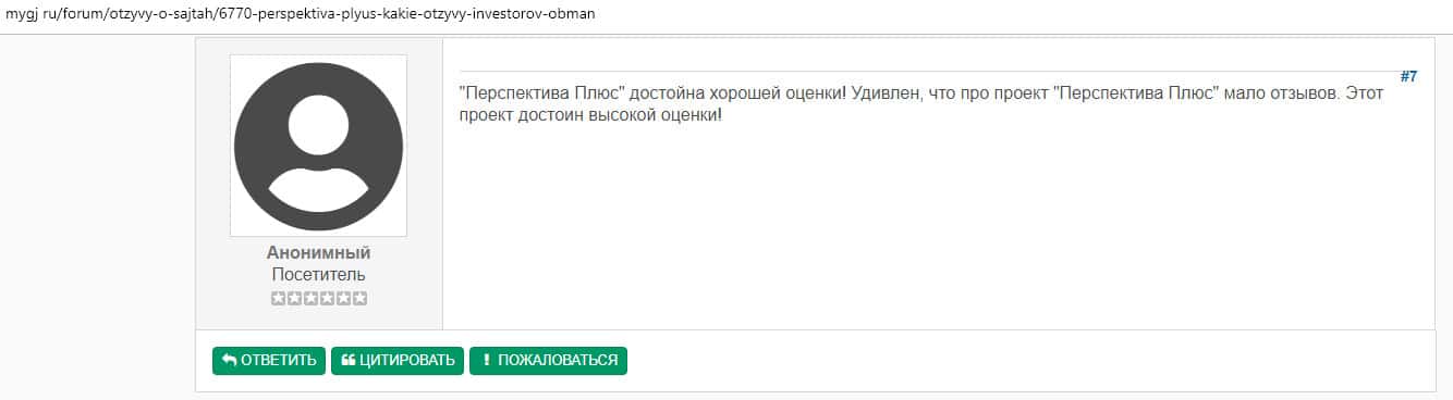 Ещё один анонимный пользователь нагло врёт об инвестиционной платформе Перспектива Плюс