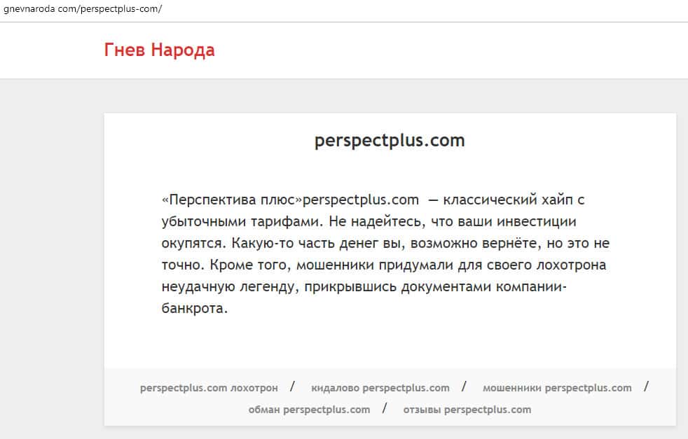 Люди, недовольные хайп-проектом Перспектива Плюс написали отзывы на gnevnaroda ru