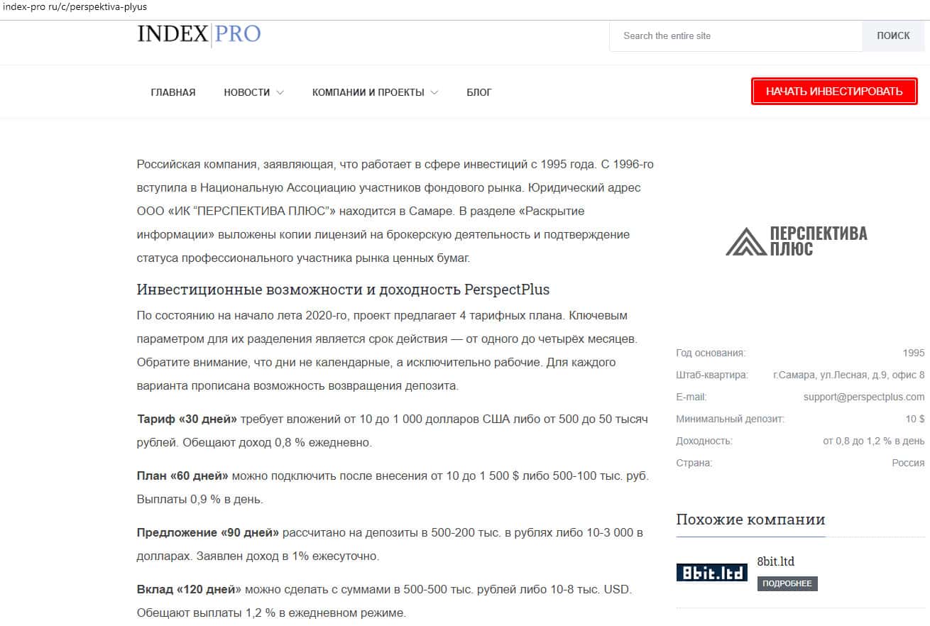 На IndexPro говорят про риски при работе с Перспектива Плюс