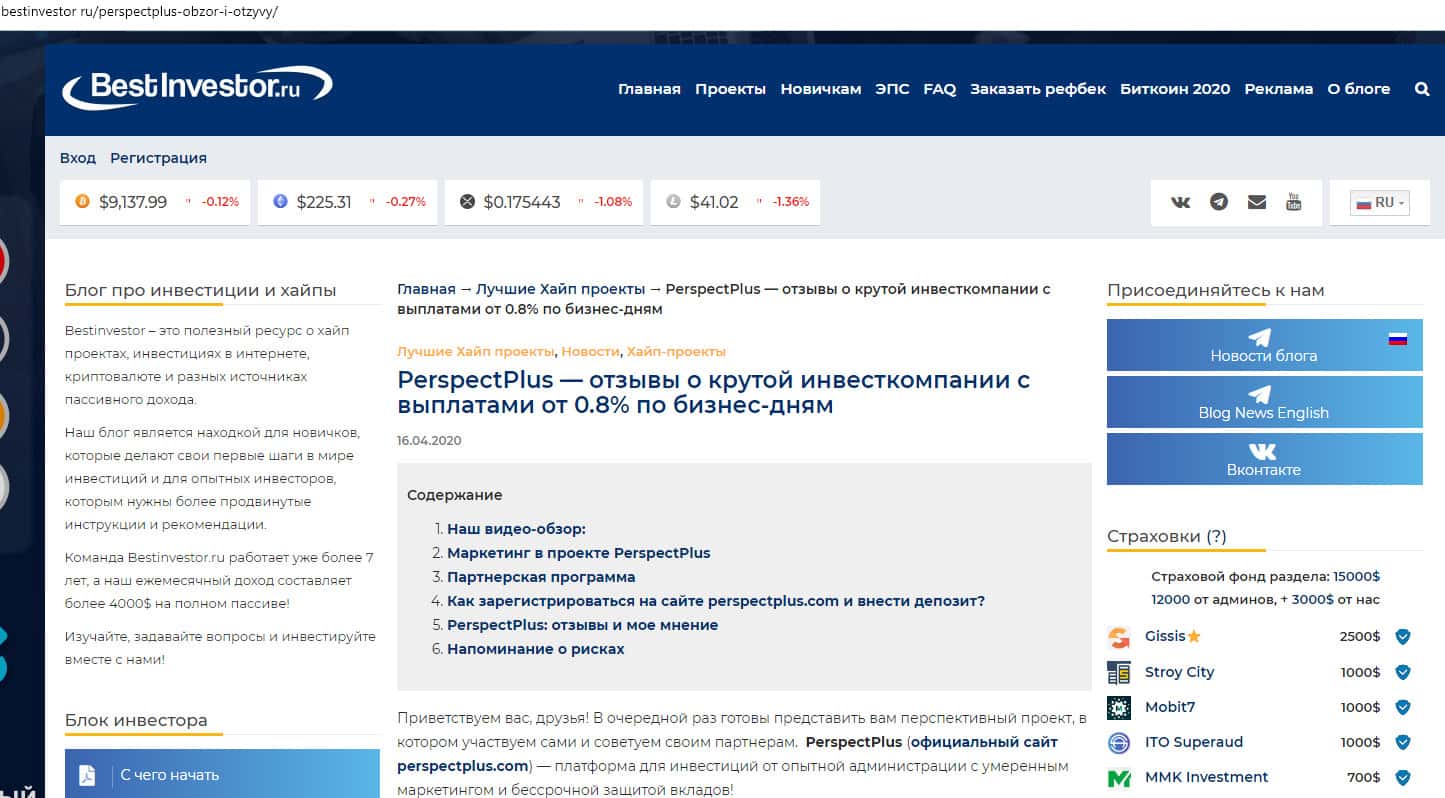 - BestInvestor ищет жертв для мошеннических действия лохотрона PerspectPlus