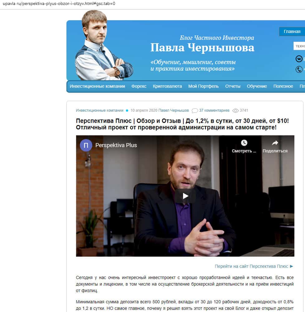 Блог upavla ru написал свой отзыв о работе надувательского лохотрона Перспектива Плюс