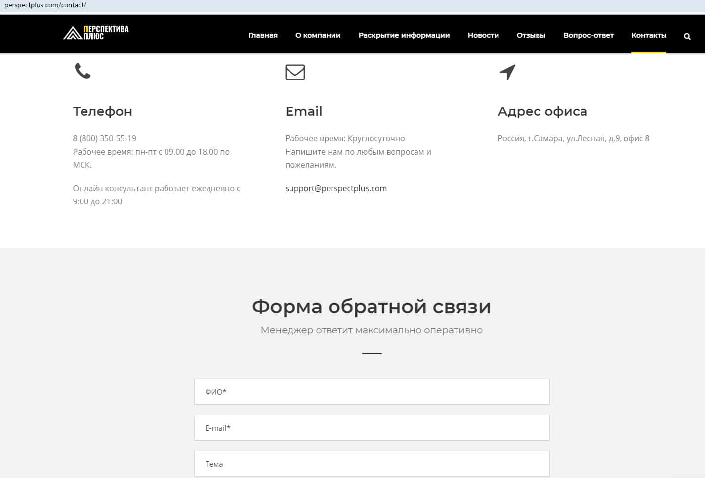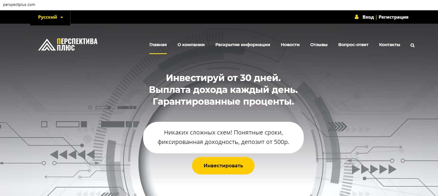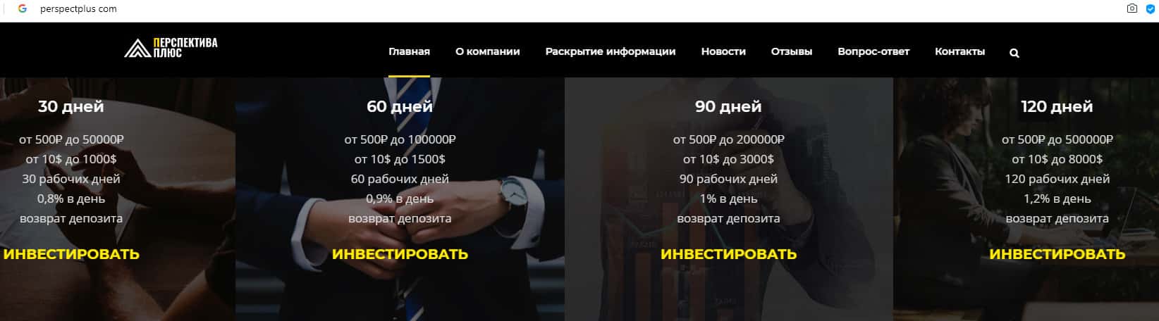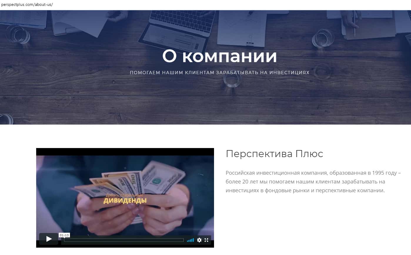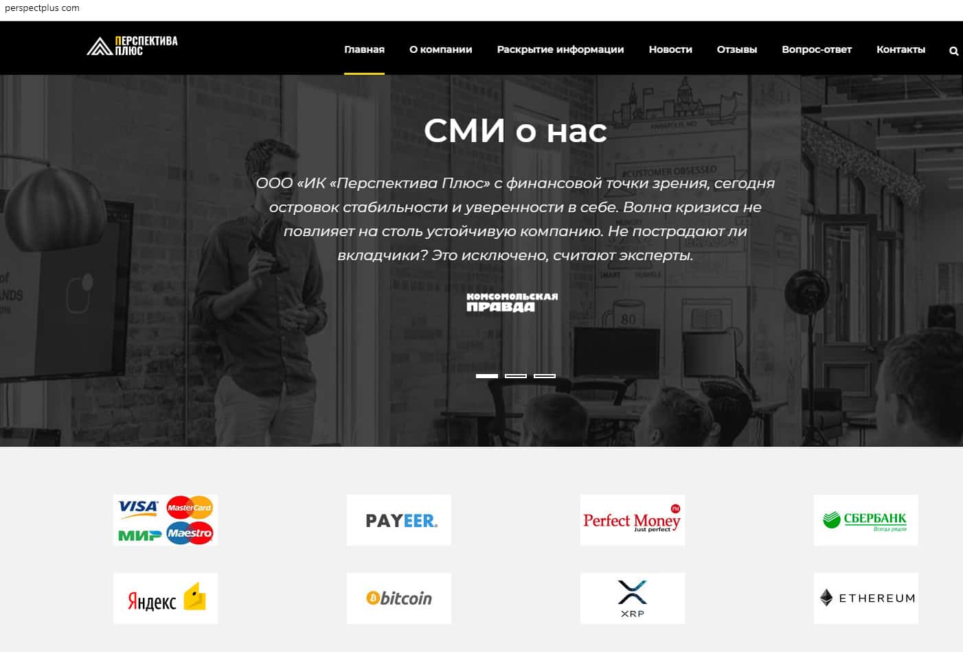 - Главная страница мошеннической инвестиционной конторы Перспектива Плюс