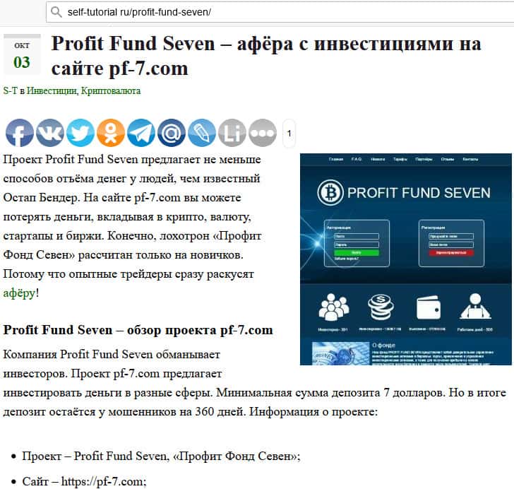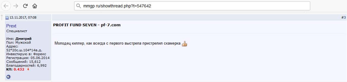 Что думает автор статьи о жульническом проекте PROFIT FUND SEVEN?