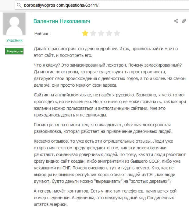 bolshoyvopros ru - сайт, где есть экспертное мнение о лохотроне